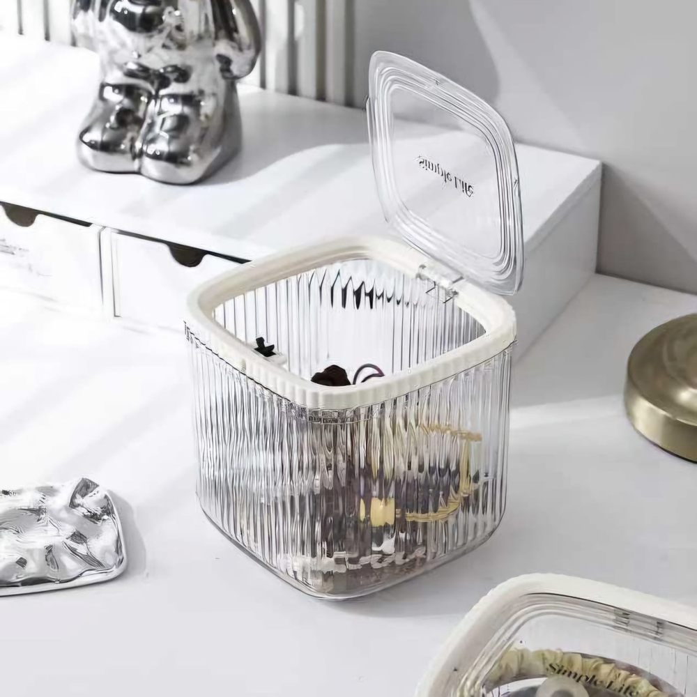 (Organizador cuadrado multiuso con tapa, el cual permite colocar, lápices, brochas o lo que usted elija. Ideal para colocarlo en la habitación, en el baño o en su escritorio).
