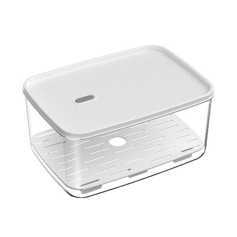 (Este tipo de tupper esta diseñado para conservar alimentos en el freezer o simplemente en la heladera. El envase transparente mejora la visualización del contenido, permitiendo una observación clara e inmediata de lo que hay en su interior. Cuenta una bandeja de drenaje. Su tapa blanca de plástico garantiza un cierre hermético, evitando la entrada de humedad y prolongando la vida útil de tus alimentos).