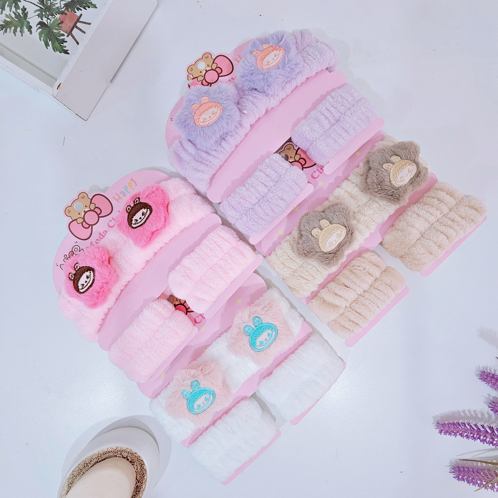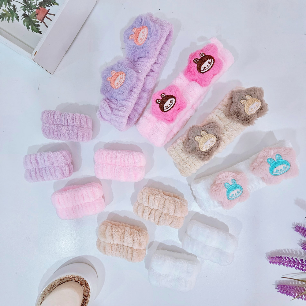 (Set de vincha de skincare y muñequeras para mantener el cabello alejado de la cara, especialmente útil durante rutinas de cuidado facial, maquillaje, o al lavarse la cara. También pueden ser un accesorio de moda para complementar un peinado. Las muñequeras evitan que el agua gotee hacia las manos o la cara durante la rutina de belleza).