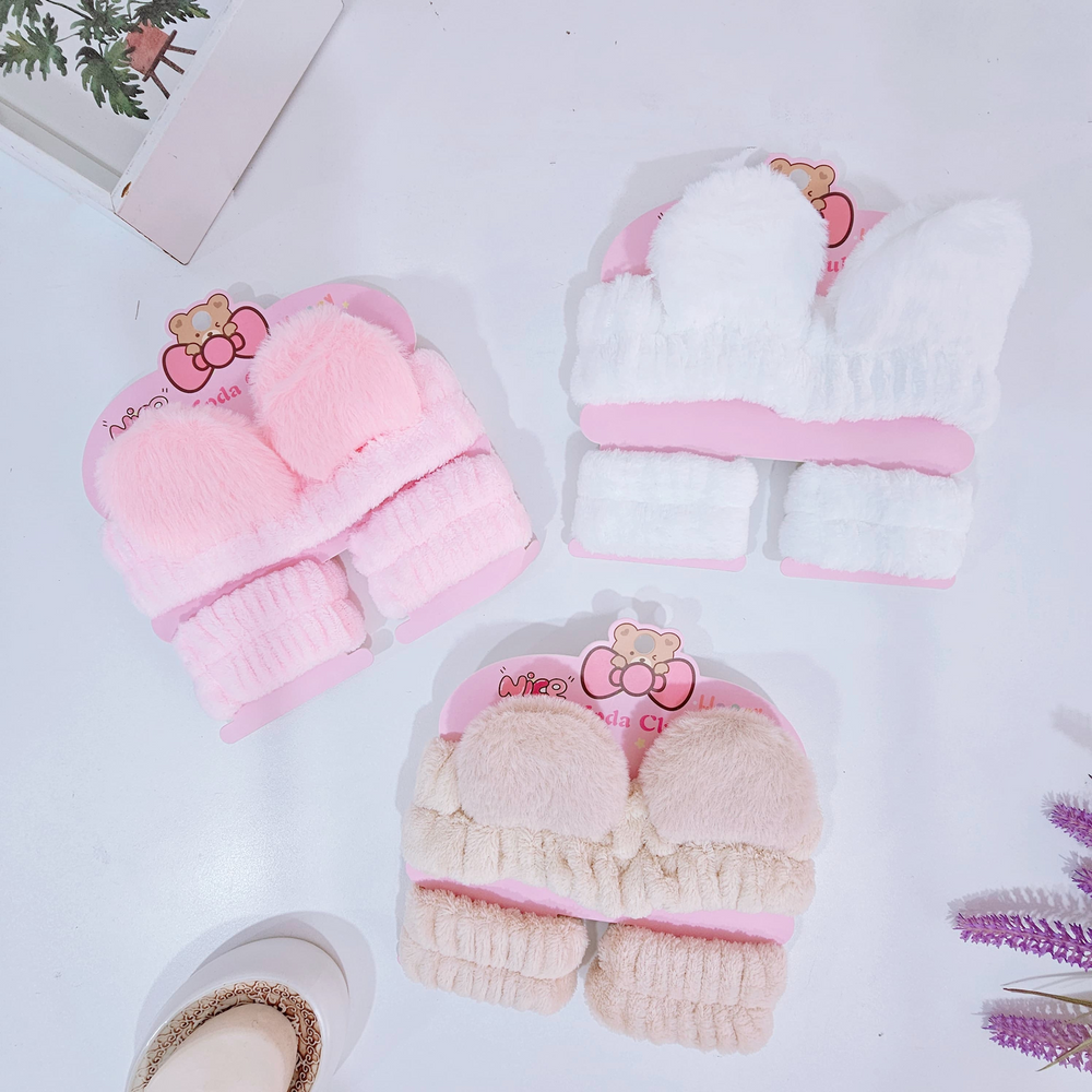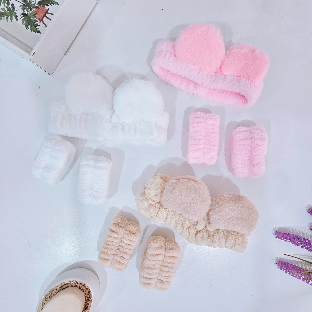 (Set de vincha de skincare y muñequeras para mantener el cabello alejado de la cara, especialmente útil durante rutinas de cuidado facial, maquillaje, o al lavarse la cara. También pueden ser un accesorio de moda para complementar un peinado. Las muñequeras evitan que el agua gotee hacia las manos o la cara durante la rutina de belleza. También pueden servir como un accesorio cómodo y suave para mantener el cabello alejado de la cara).