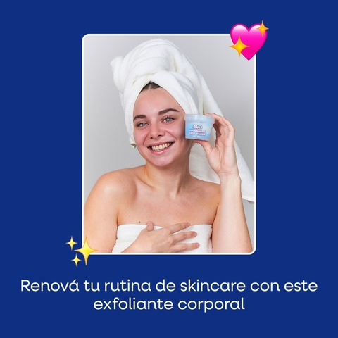 (Este exfoliante corporal elimina células muertas y renueva la piel gracias a sus partículas exfoliantes suaves. Enriquecido con extracto de arándanos, aporta antioxidantes que revitalizan, suavizan y dejan la piel con un aspecto más luminoso y saludable. Ideal para todo tipo de piel. Usalo 2 a 3 veces por semana y sentí la diferencia).