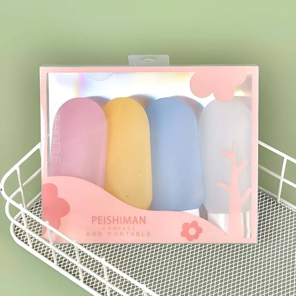 (Set x 4U. Neceser de viaje, que cuenta con 4 envases que son un material de plástico. ideal para poder sacar el producto fácilmente presionándolo. Son super útiles a la hora de llevarlos de viaje, ya que por su tamaño no ocupan espacio).