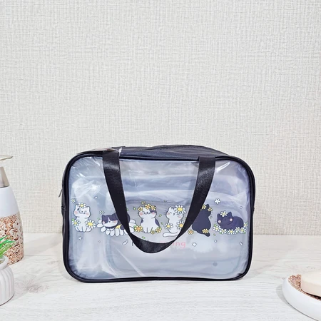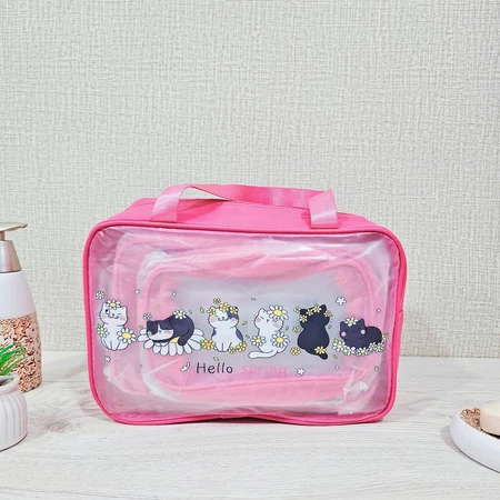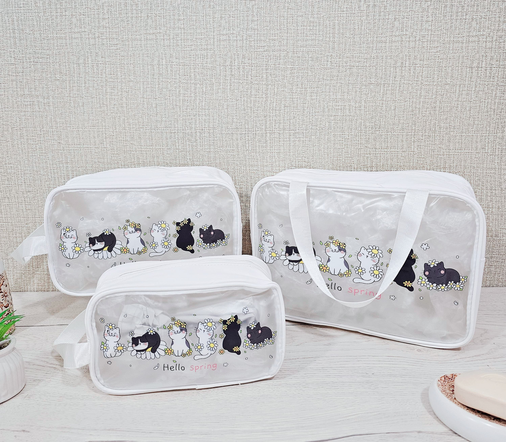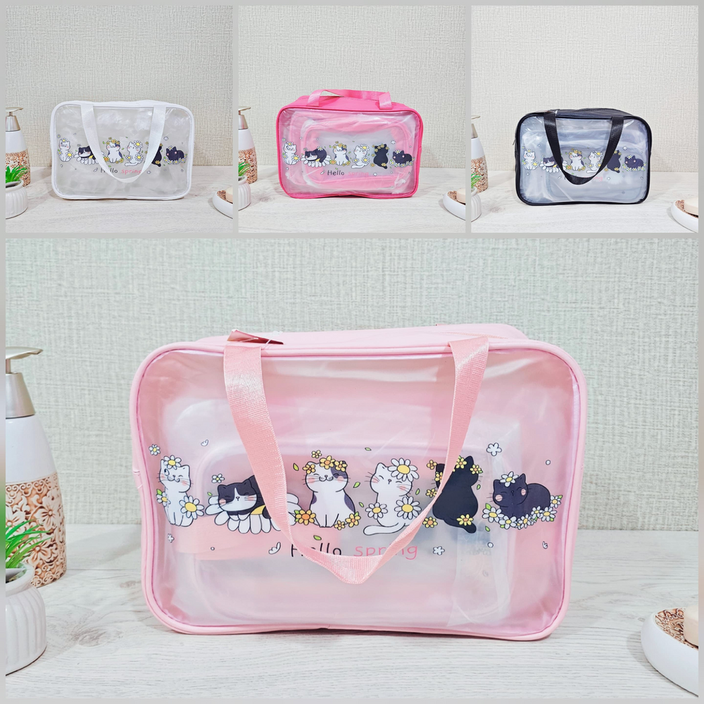 (Portacosmetico transparente con diseño de gatito vienen 3 en 1, cuenta con su manija para transportarlo donde quieras. Es ideal para la organización de tus maquillajes).