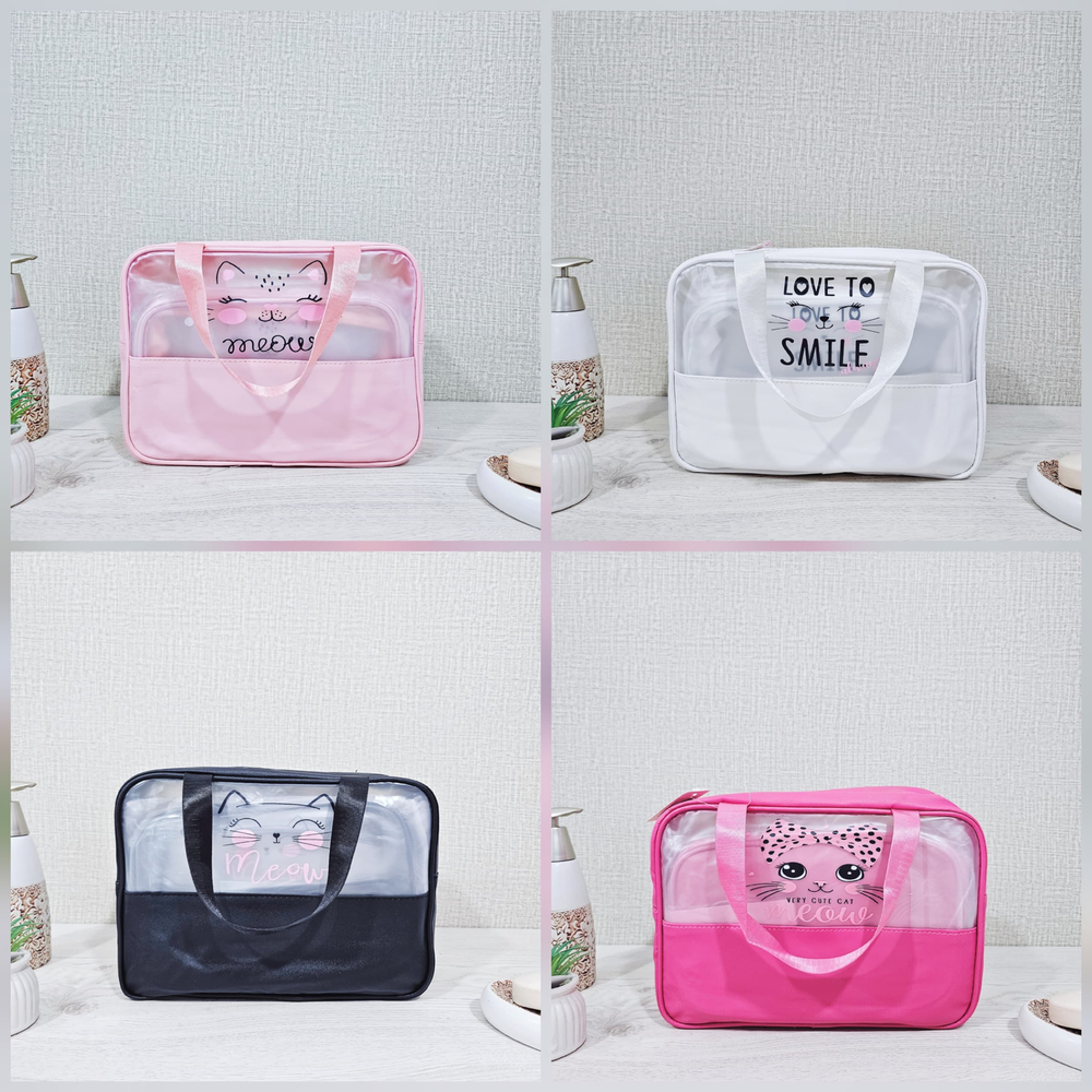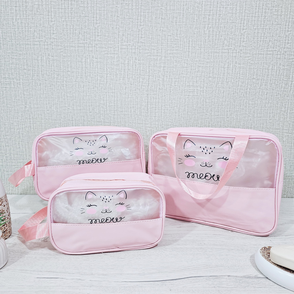 (Set de 3 portacosmeticos que sirven para guardar y organizar productos de belleza, maquillaje, artículos de tocador y accesorios personales, manteniéndolos ordenados y protegidos. Su diseño permite transportarlos fácilmente, siendo ideales para viajes, escapadas o simplemente para mover los productos dentro del hogar, como del baño al tocador. Ayudan a mantener los cosméticos limpios y protegidos del polvo y la humedad, especialmente si se usan en el baño).