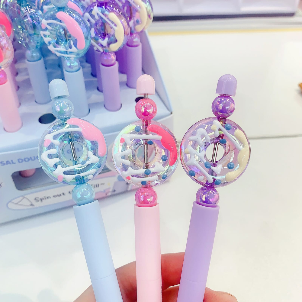 (Caja x 48U. biromes con diseño de dona, cuentan con un sistema giratorio y tinta azul . Ideal para regalar).