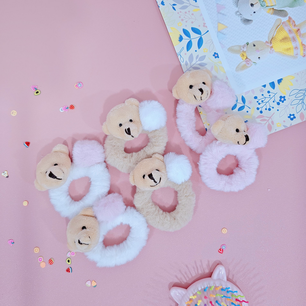 (Pack x 12U. Colita con diseño de osito. Su material es felpudo el cual impide que te tire el cabello).