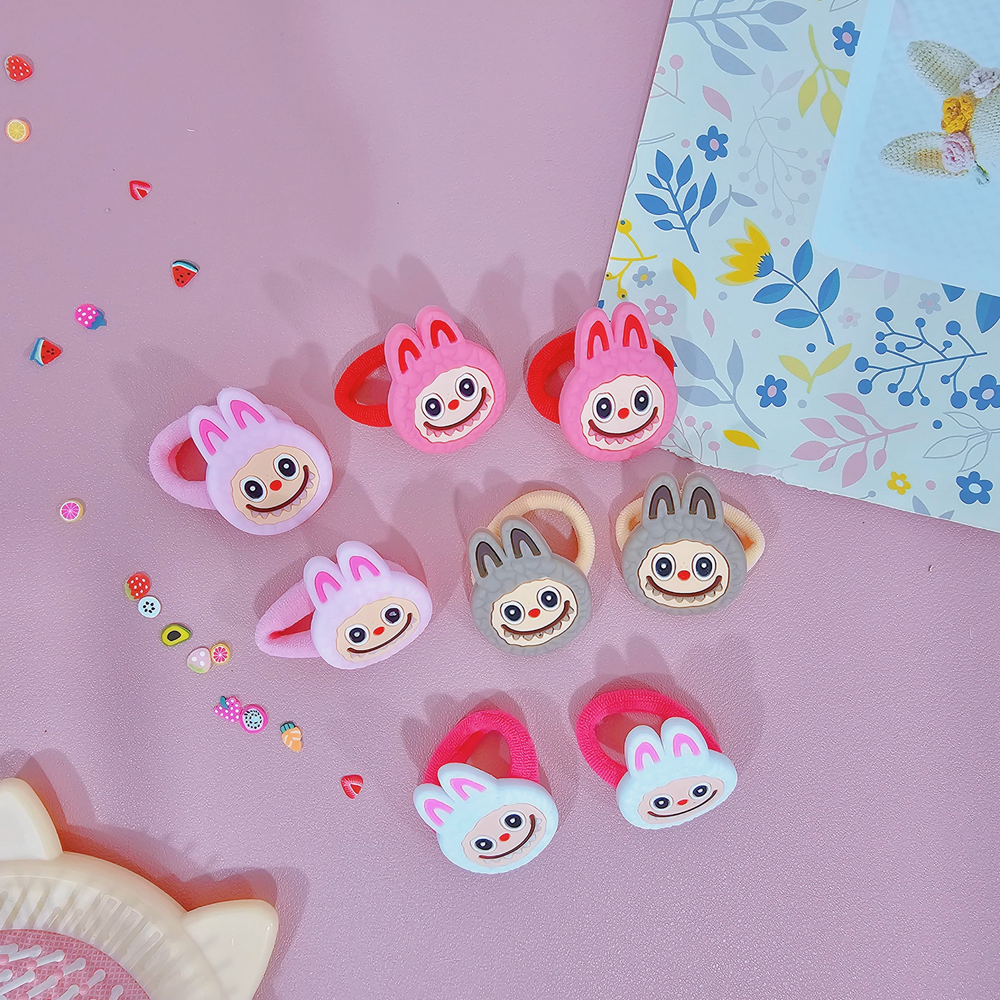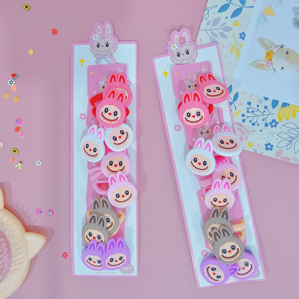 (Pack x12 Blíster Colita Labubu. Colitas que cuentan con una figura de goma de "labubu" y con diversos colores, Ideales para los peinados de niñas).