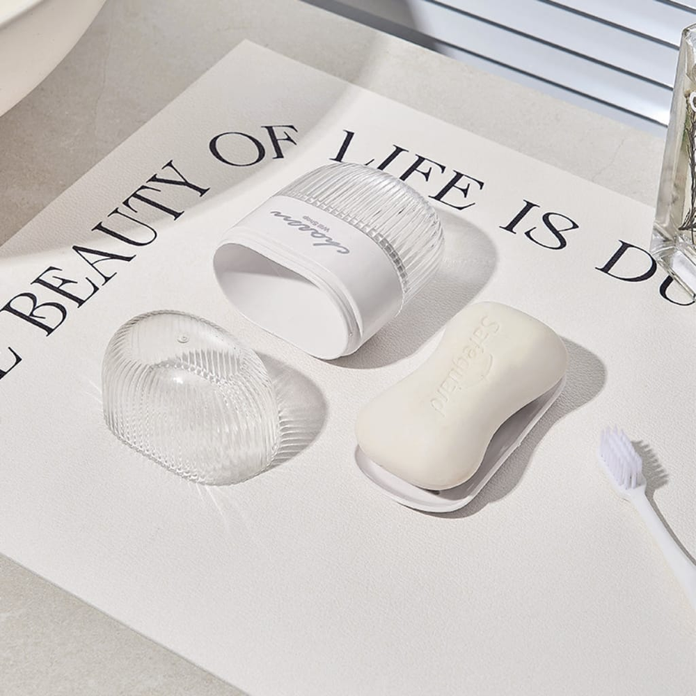 (Jabonera con relieve, diseño único minimalista y super practico para llevar de viaje, cuenta con una bandeja de drenaje).