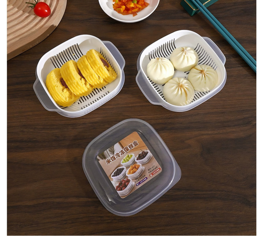 (Contenedor ideal para adelantar preparaciones en la cocina y guardar alimentos en remojo como tomates. Se puede utilizar para calentar en Microondas retirando el escurridor).