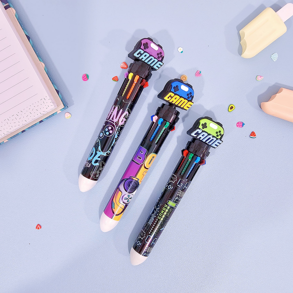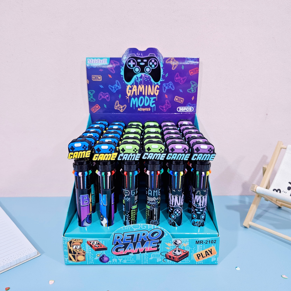(Caja x36U. Birome "Game". Estas biromes son retráctil, ideal para que al guardarla no te manche tus cosas. Además cuenta con varios colores en una misma lapicera, ideales para regalar o que no falte en tu cartuchera).