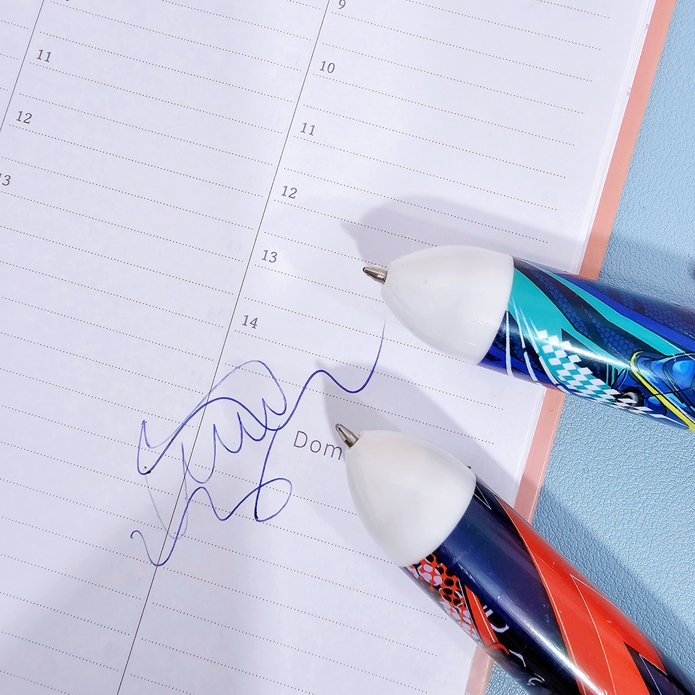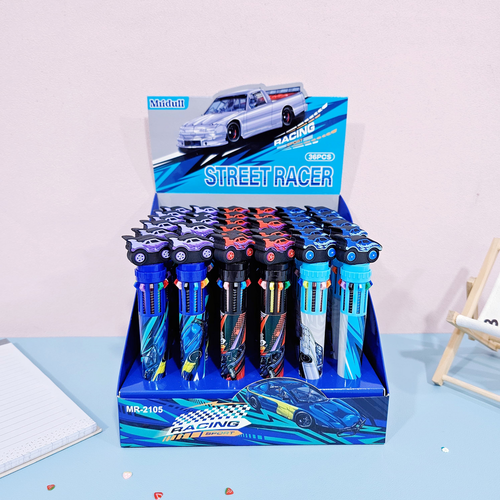 (Caja x36U. Birome "Auto". Son retráctil, ideal para que al guardarla no te manche tus cosas. Contiene varios cartuchos de tinta de diferentes colores permitiendo cambiar de color fácilmente).