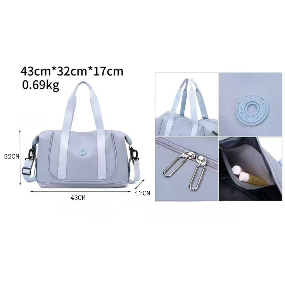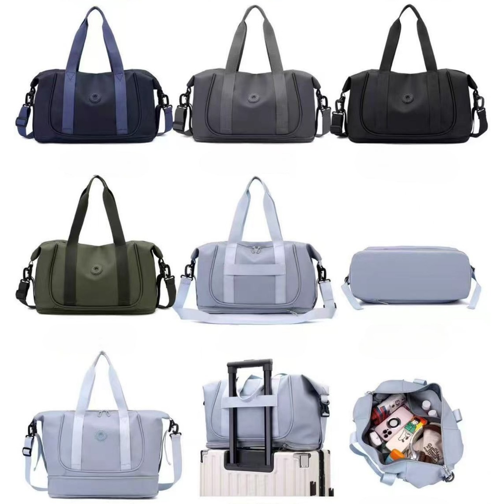 (Bolso para Viaje, cuenta un compartimiento amplio, dos bolsillos internos, bolsillo para húmedos, correa larga. Ideal para poder ponerla arriba de la valija, llevar de viaje o al gimnasio).