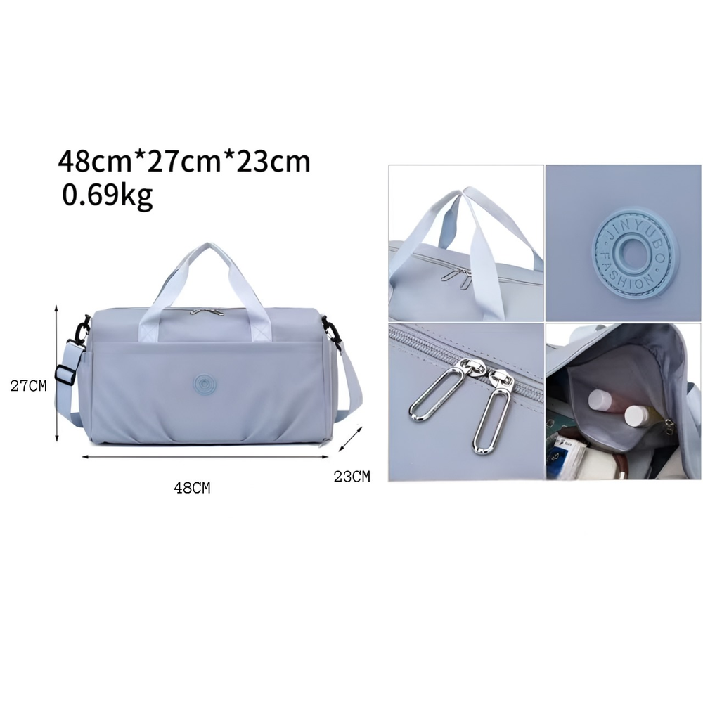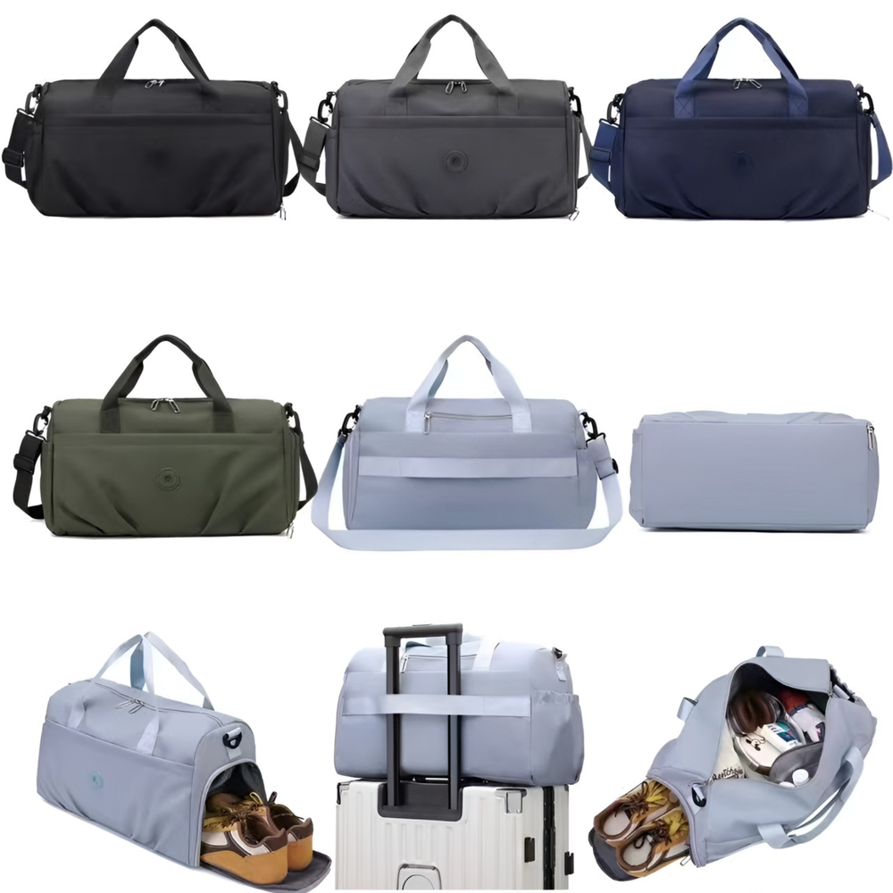 (Bolso para Viaje, tela de excelente calidad, con un tejido grueso y resistente que garantiza durabilidad y una excelente terminación. Cuenta con varios compartimientos de diferentes tamaños como un compartimiento impermeable para guardar ropas húmedas, tambien trae una correa para poder ponerla arriba de la valija y en la parte lateral lleva un compartimiento para guardar zapatillas. Ideal para llevar de viaje o al gimnasio).