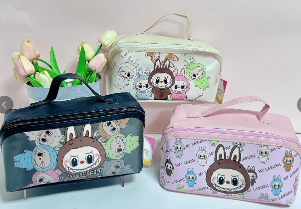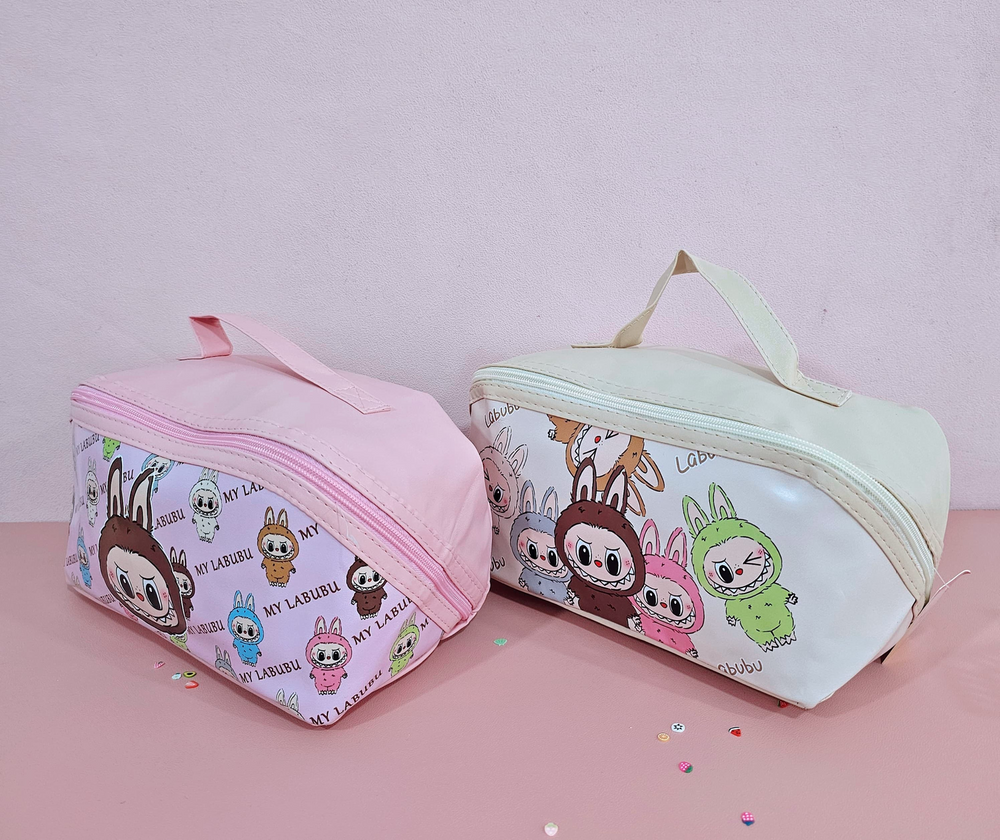 (Portacosmeticos de Labubu súper práctico y fácil de limpiar por su material de plástico. Vienen en 3 colores negro, beige y rosa).