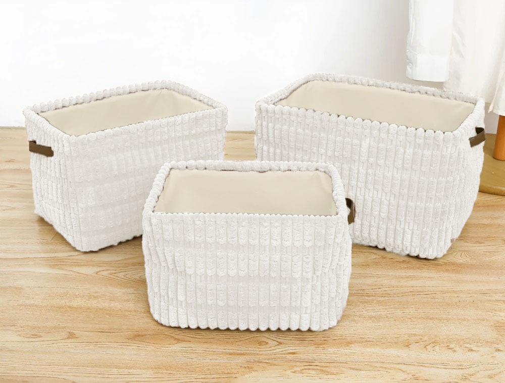 (Canastos organizadores, uno grande y dos pequeños ,muy buena calidad, resistentes y cuentan con sistema apilable. Ideales para guardar maquillaje, juguetes, etc). (Grande: 40cm x 30cm x 25cm Aprox.)( Mediano: 35cm x 25cm x 23cm Aprox)( Chico: 30cm x 20cm x 20cm Aprox).