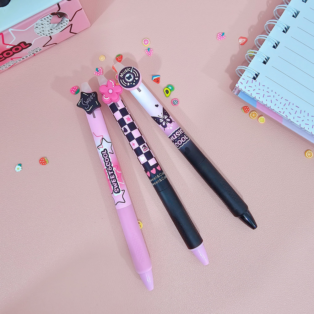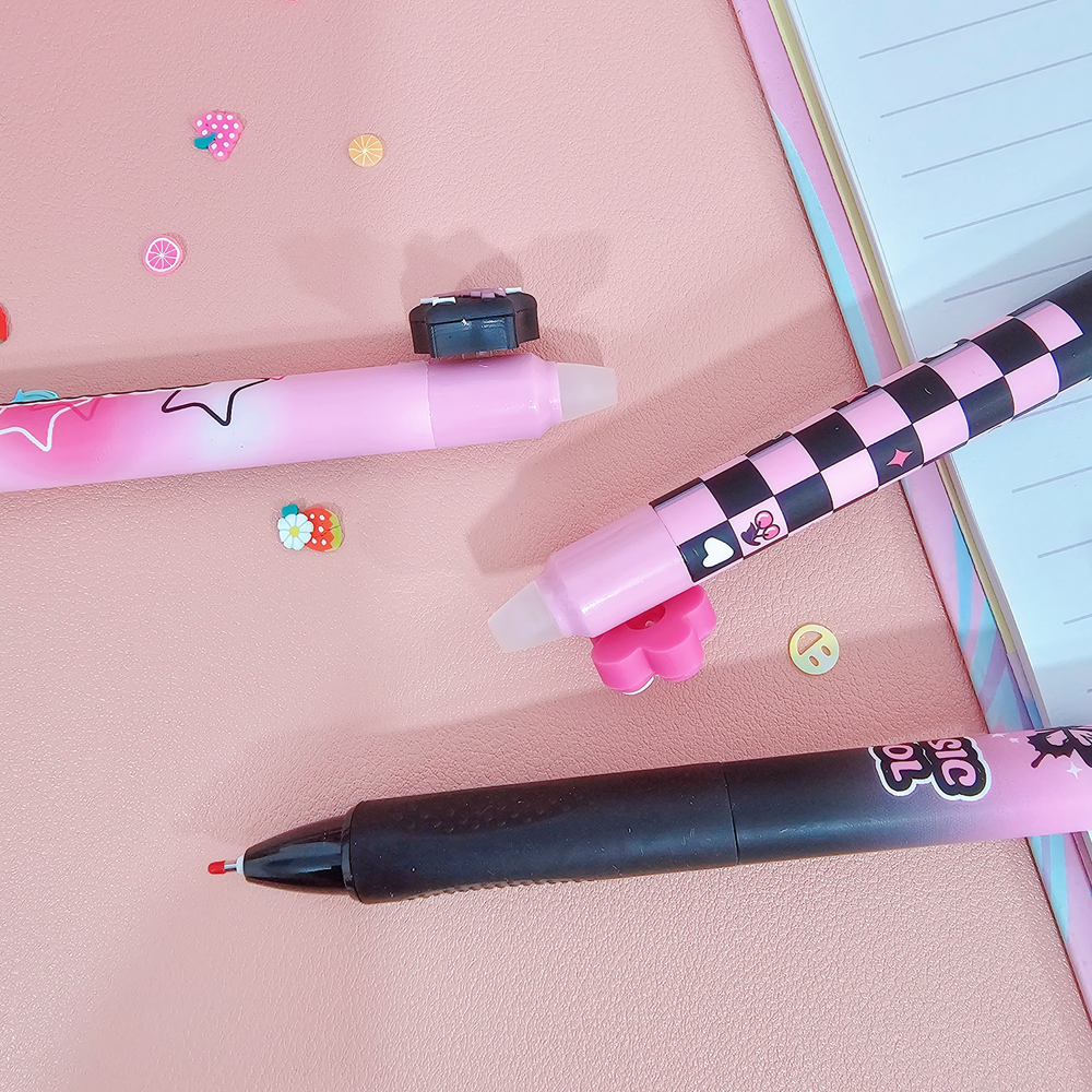 (Biromes con hermosos diseños en color negro y rosa, con tinta azul, cuenta con una goma en la punta para borrar la tinta. Ideal para regalar).