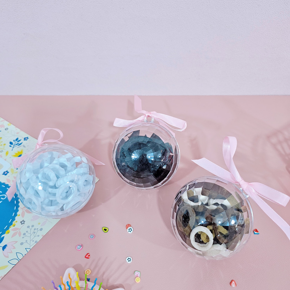 (Estuche de colitas con forma de esfera, vienen en tres opciones diferentes. Ideal para realizar peinados y destacar tu cabello).