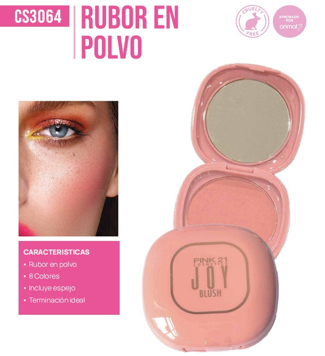 (Rubor en Polvo "Pink 21", posee 8 tonos diferentes a elección. Ideal para resaltar tu maquillaje y belleza natural).