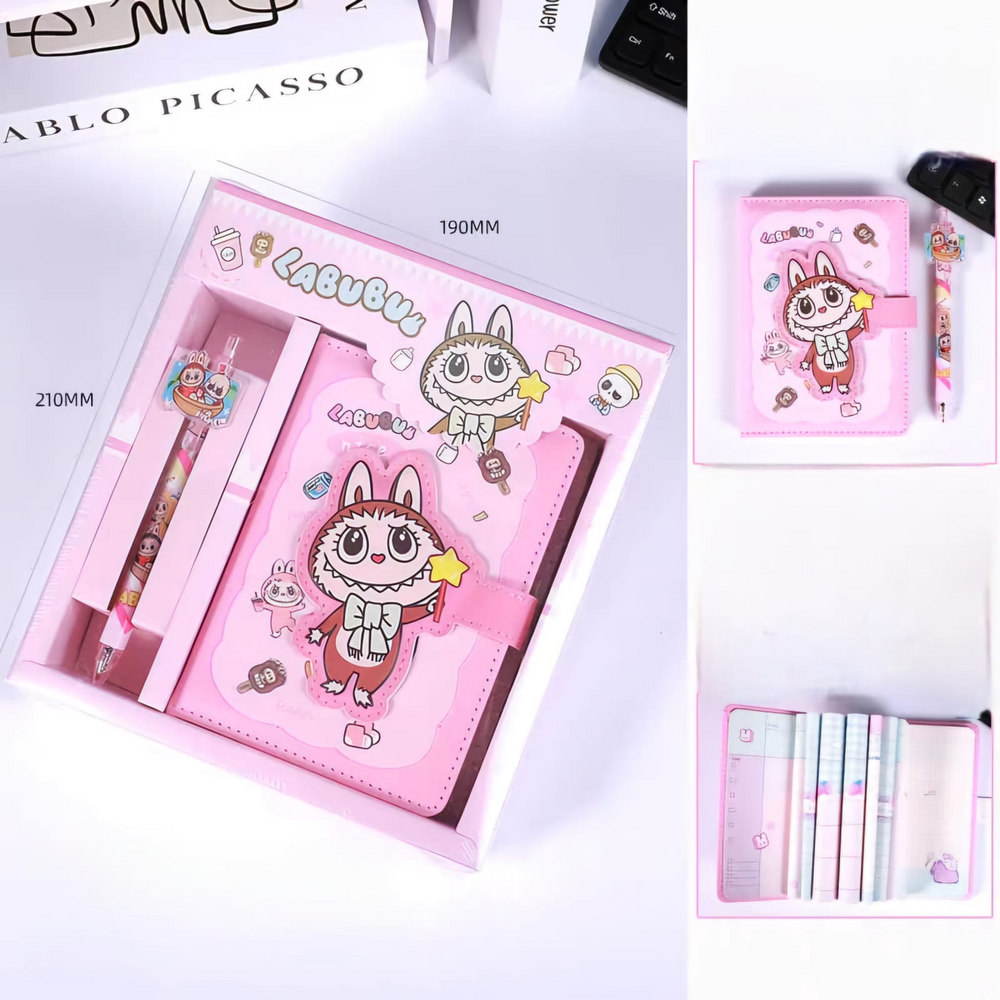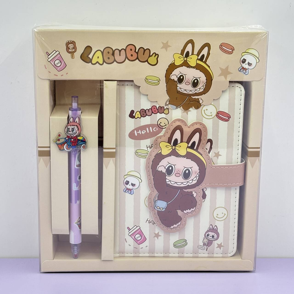 (Set de cuaderno + lapicera con un tierno diseño de "Labubu" disponible en dos modelos. Ideal para regalar ).