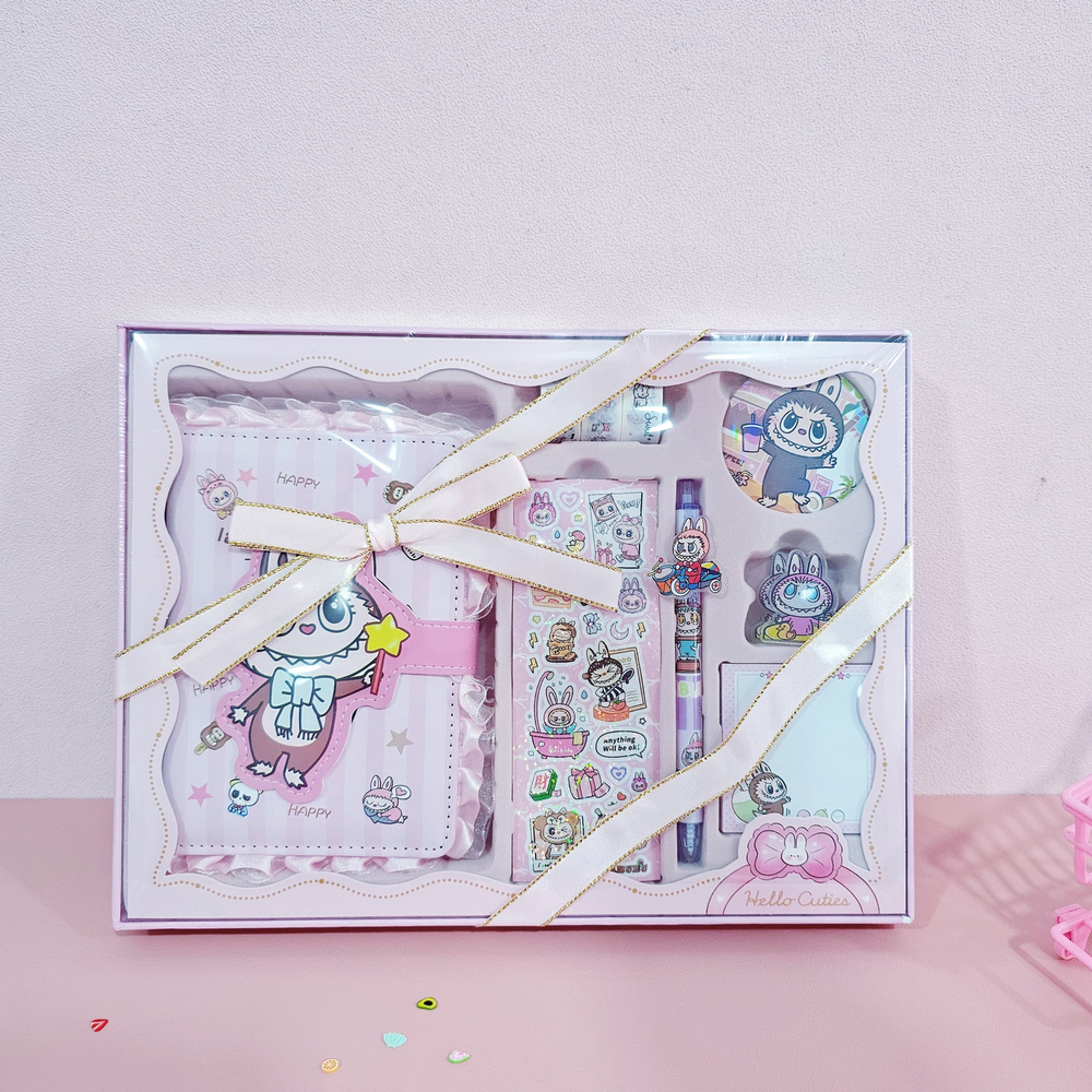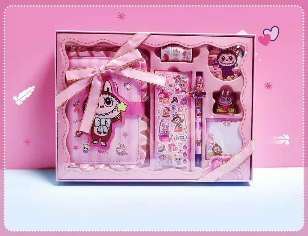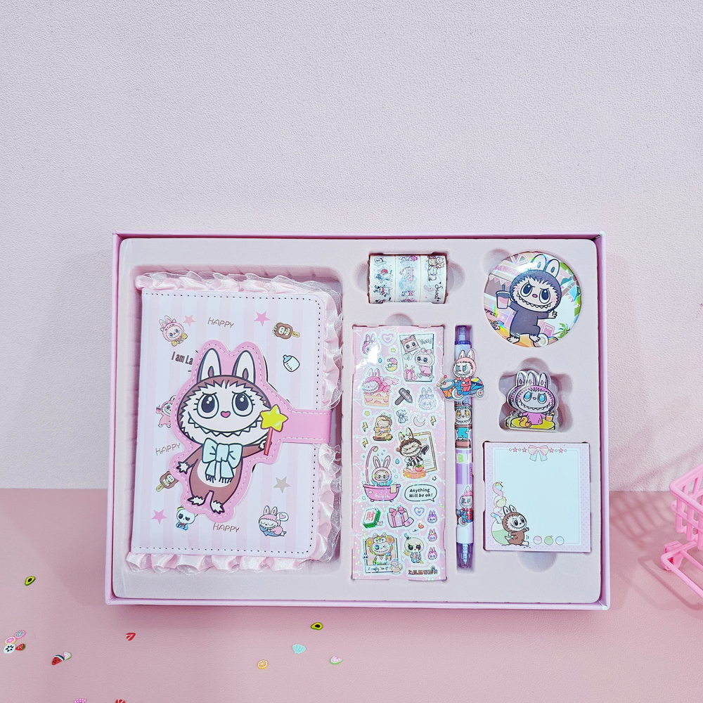 (Este es un set de cuaderno, lapicera, cinta adhesiva, bloc de notas. broche y stickers de Labubu. El diseño es lindo y colorido, lo que lo convierte en un gran regalo para niños y adultos. El set viene en caja, lo que lo hace perfecto para regalar).