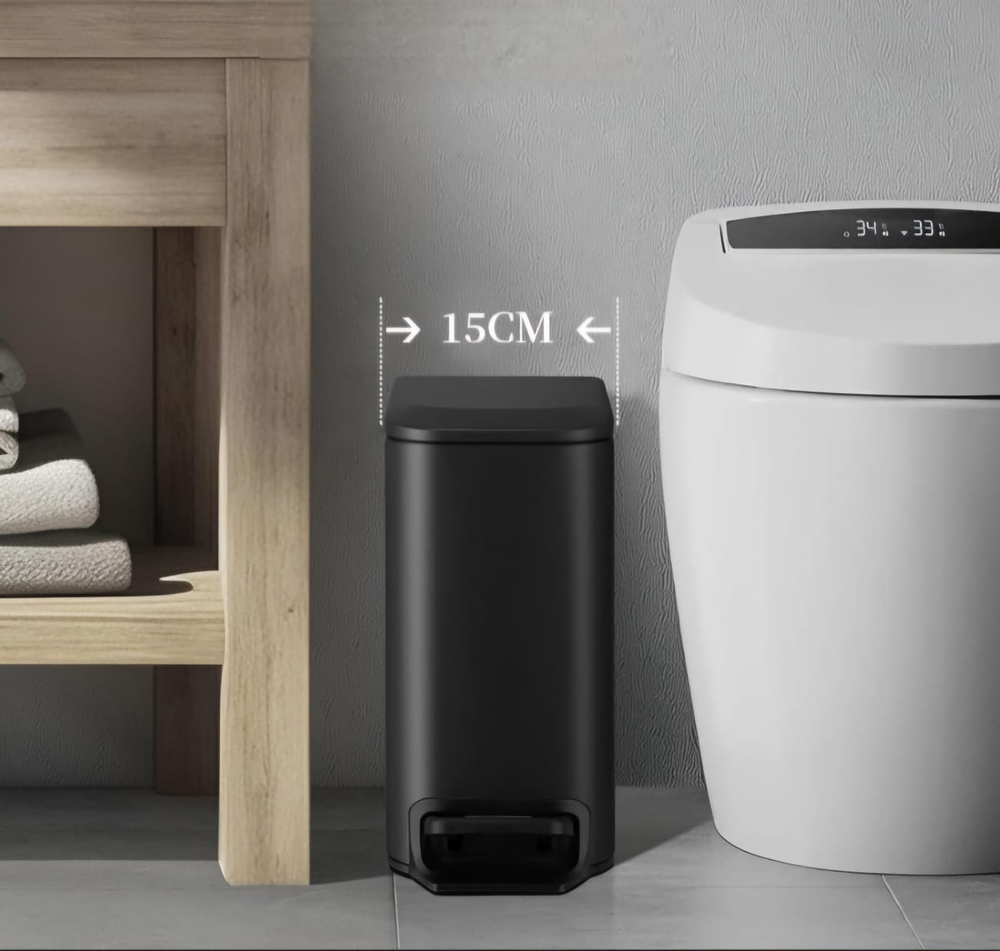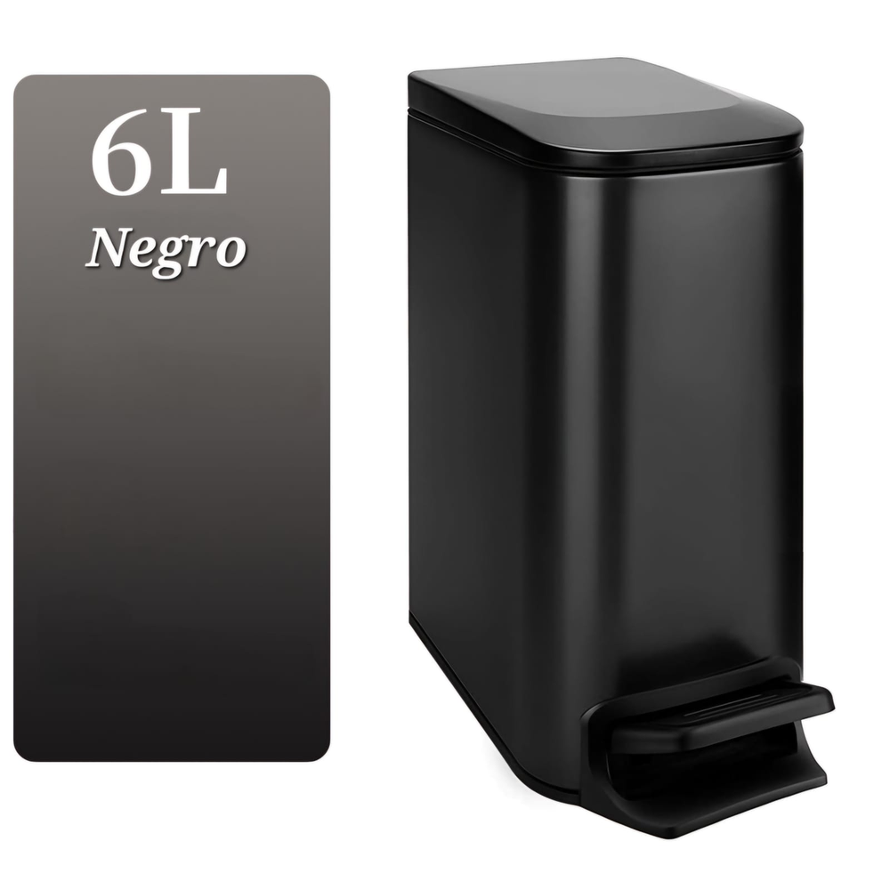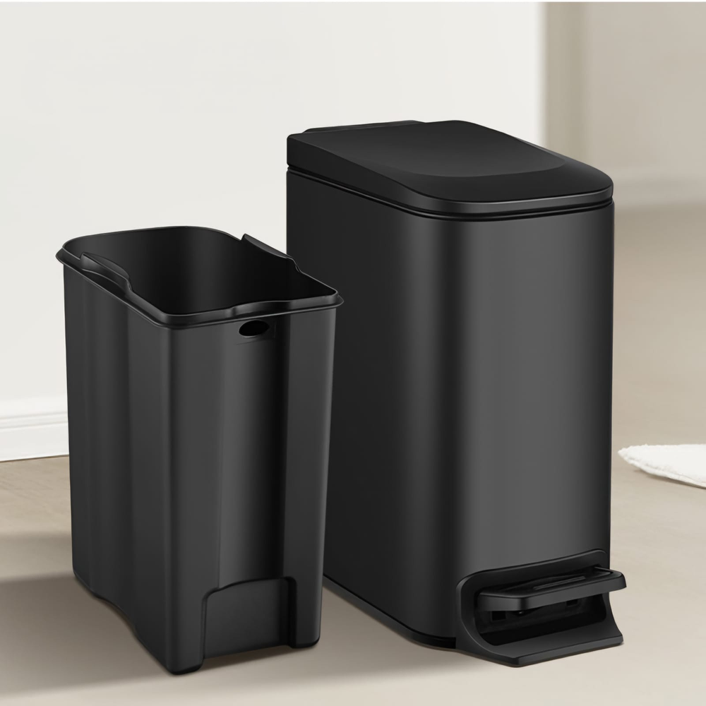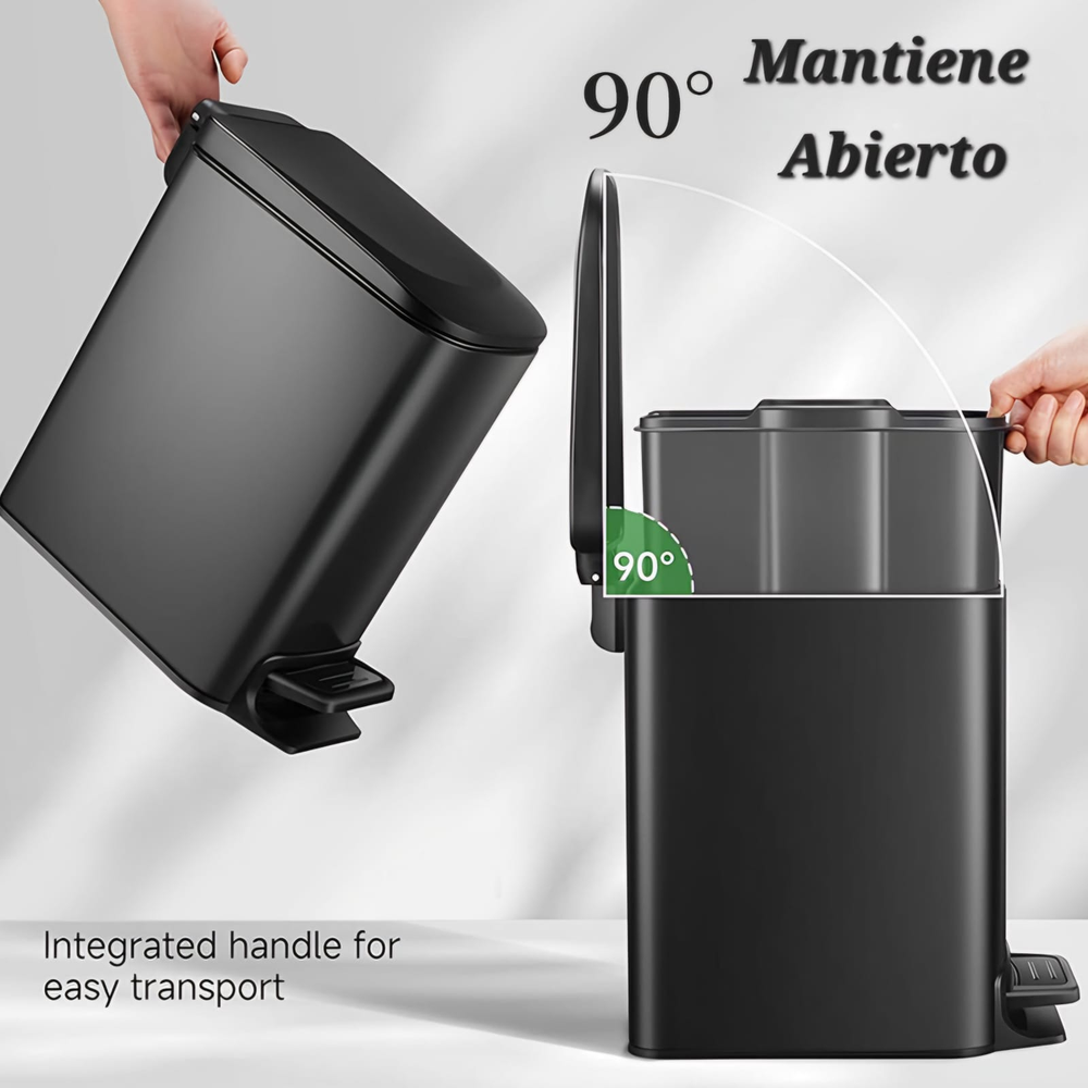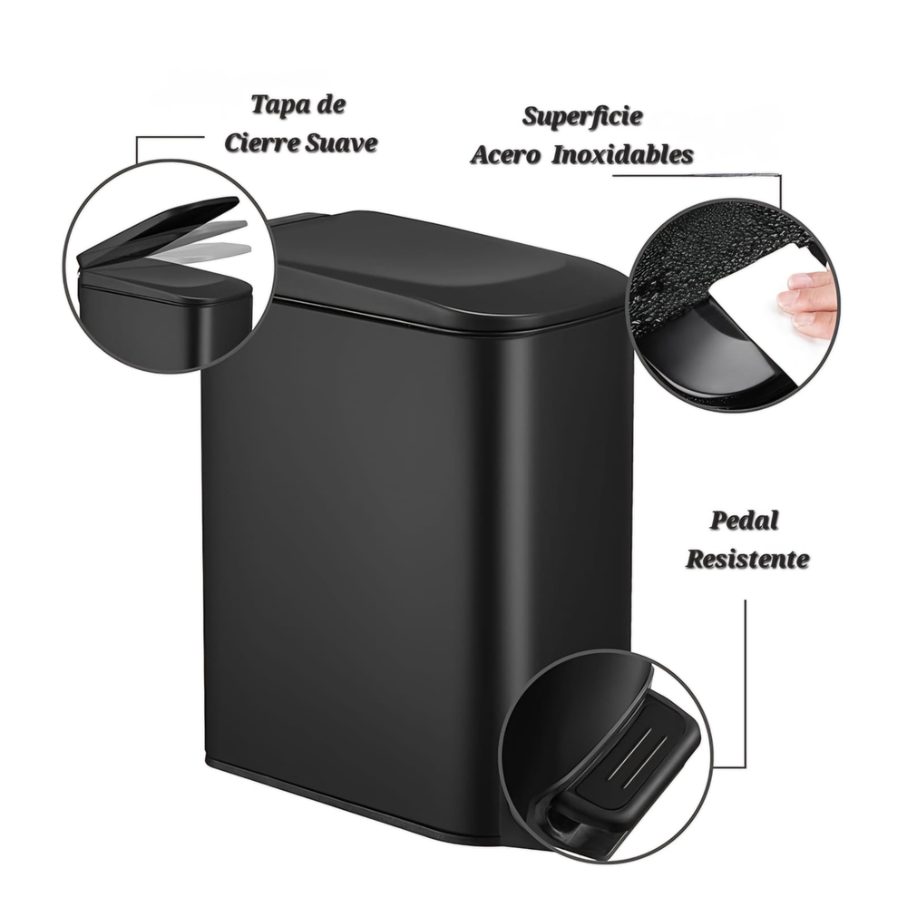 (Tiene una forma delgada, lo que lo hace adecuado para un baño o cualquier espacio reducido, la tapa se abre y se cierra de manera suave y silenciosa con solo presionar el pedal, el cubo interior del bote de basura se puede quitar fácilmente para limpiar o desechar desechos).