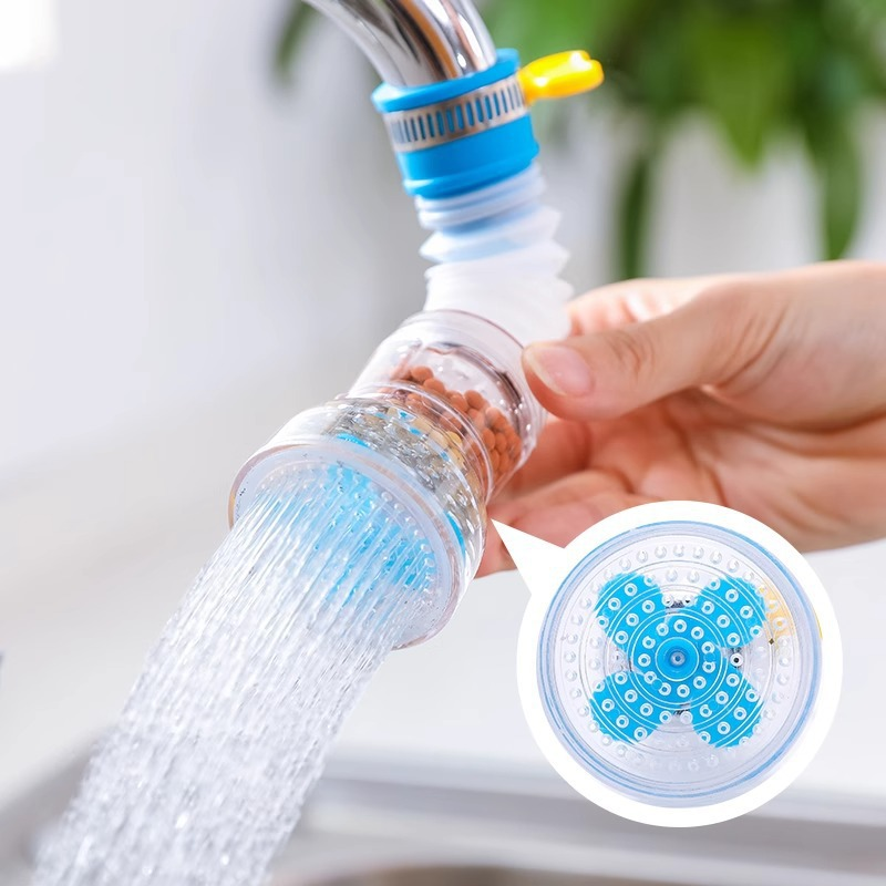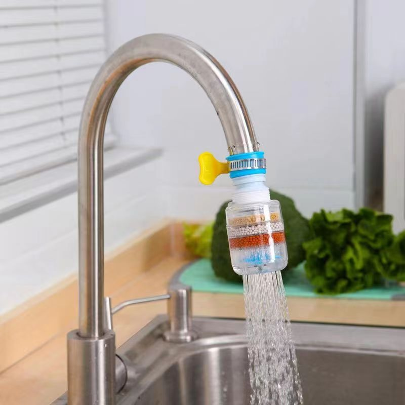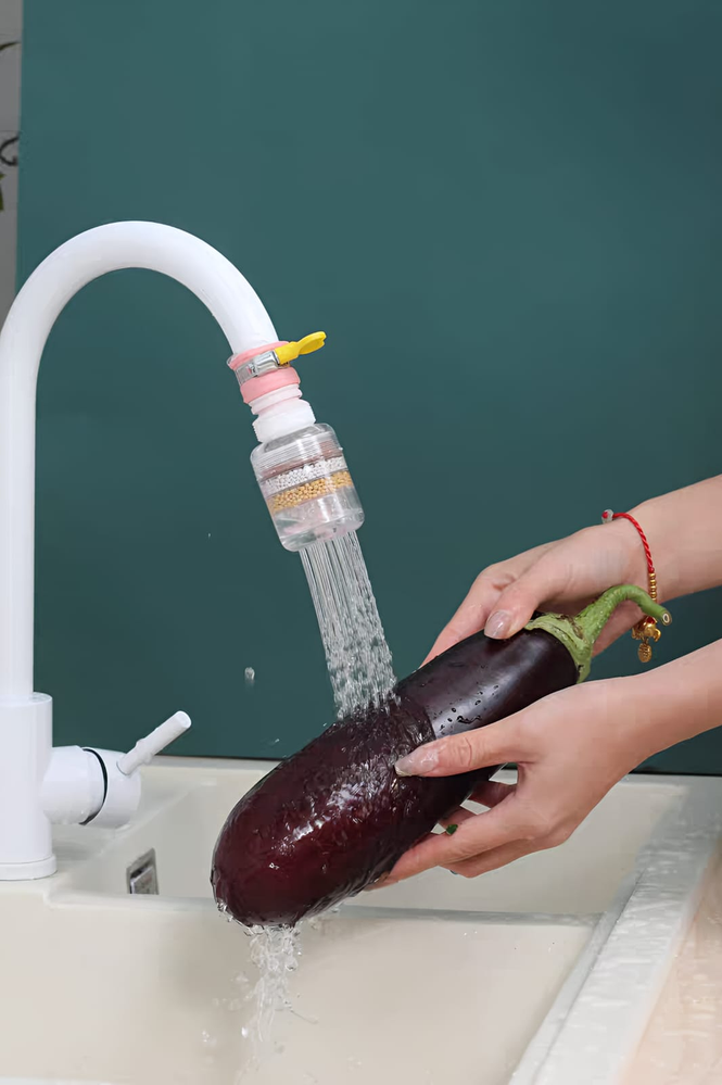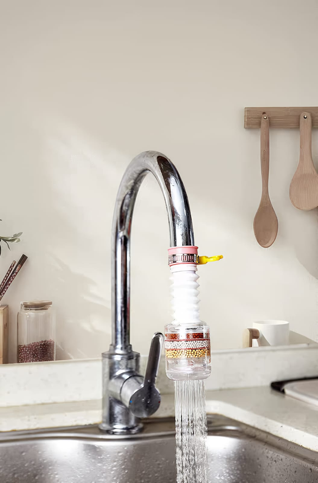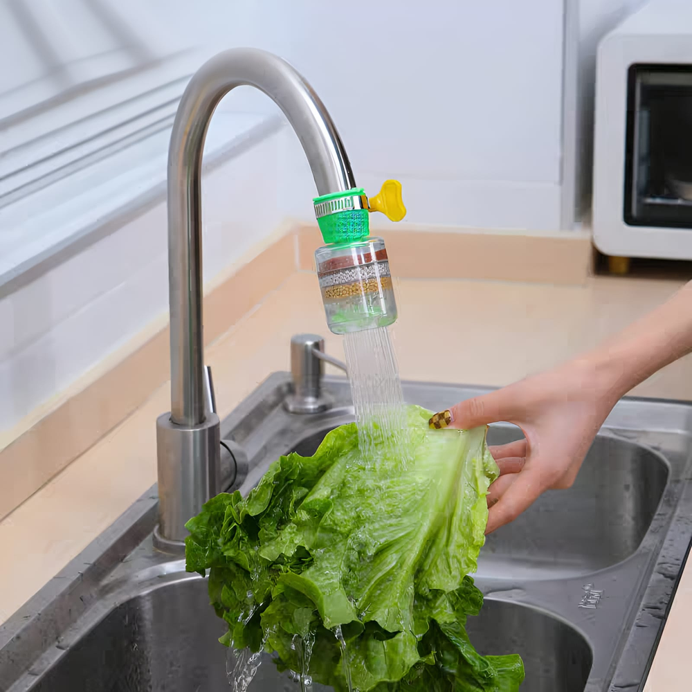 (Se instala en la salida del grifo y sirve para purificar el agua que fluye a través de él, eliminando impurezas como sedimentos, cloro y otros contaminantes. Esto mejora el sabor, el olor y la calidad del agua para beber y cocinar).