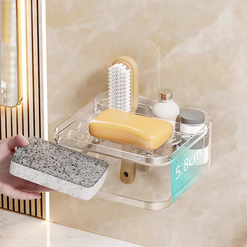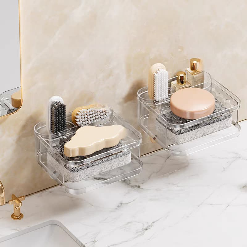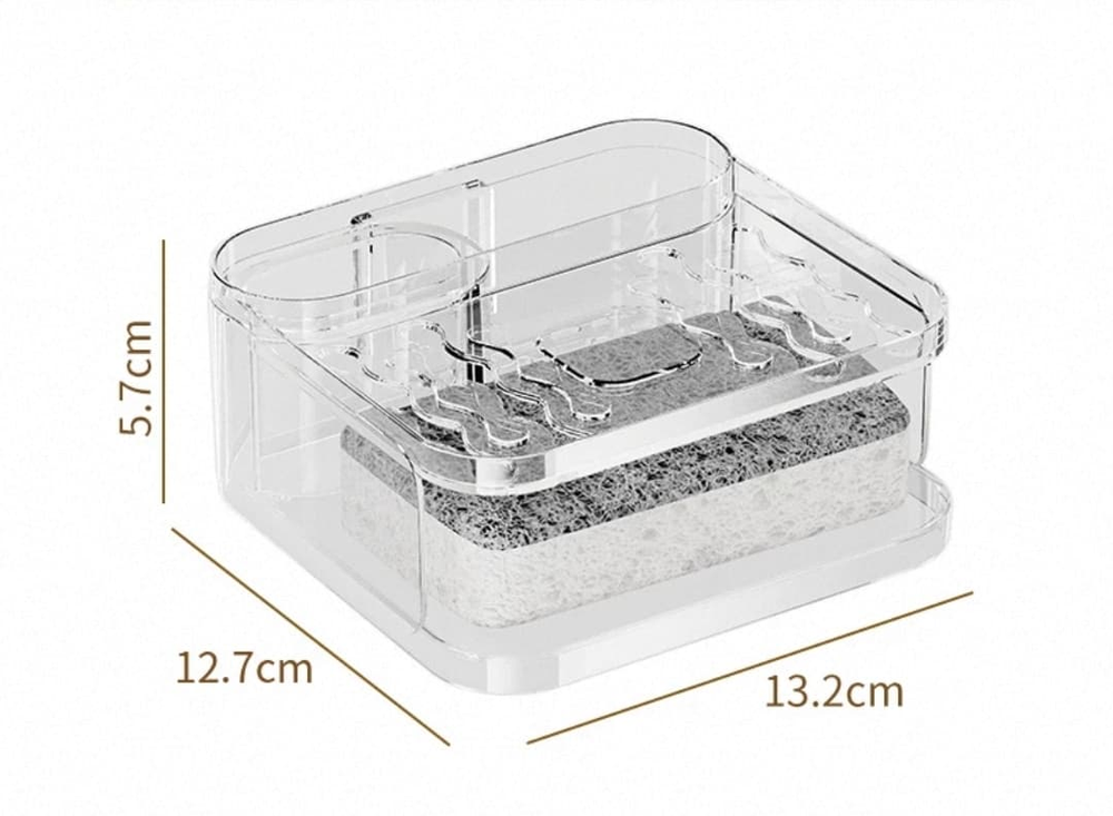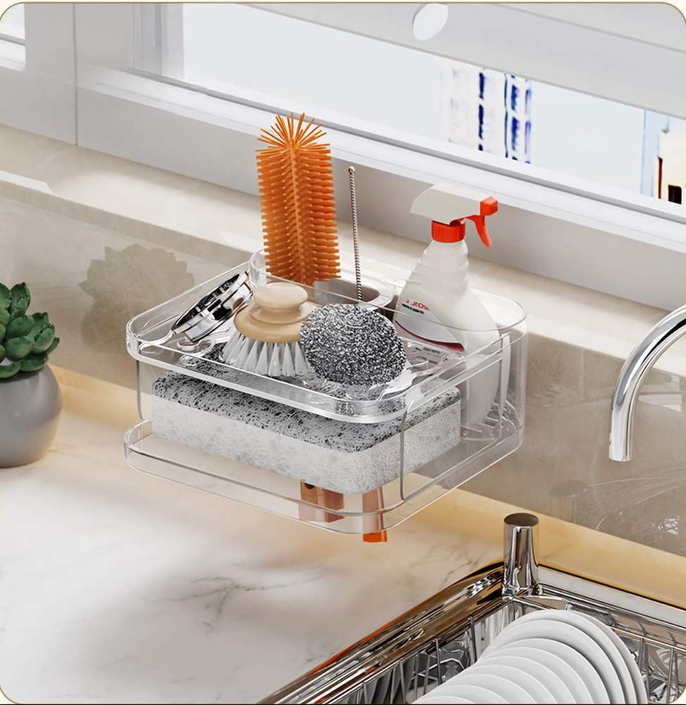 (Organizador o soporte para productos de limpieza de cocina o baño. Permite guardar de manera ordenada y accesible Su diseño presenta un diseño de doble capa para drenaje y absorción de agua. Es fácil de instalar y limpiar, Al mantener los elementos secos y elevados, ayuda a prevenir la proliferación de bacterias y moho, contribuyendo a un ambiente más higiénico en el área de lavado).