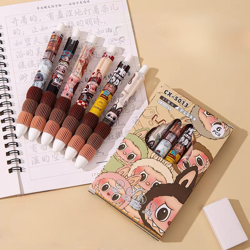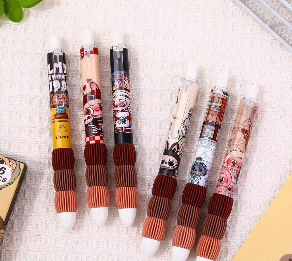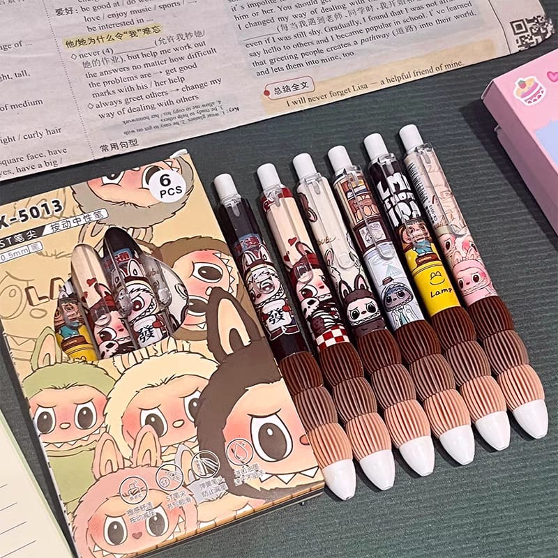 (Bolígrafos borrables con diseños de personajes de dibujos animados Labubu. Son bolígrafos de gel, con tinta negra . Sus diseños de dibujos animados los hace atractivos para estudiantes y como regalo).