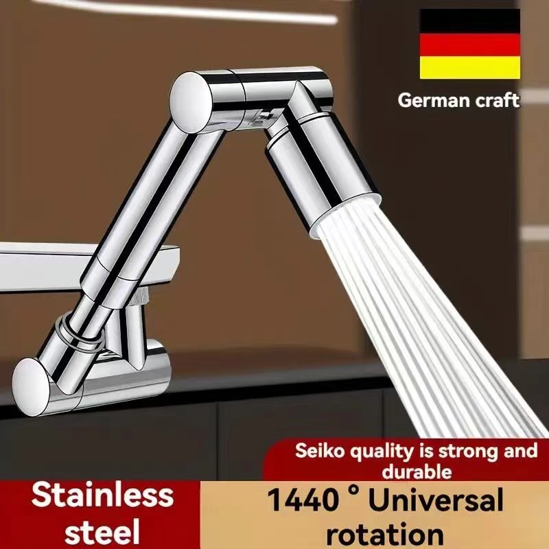 (Permite que el grifo gire hasta 1440 grados, cubriendo un área más amplia en la bacha. Su capacidad de giro en múltiples direcciones facilita el lavado de objetos grandes, llenar recipientes altos o limpiar la bacha de manera más eficiente. Es ideal para cocinas y baños, ya que se adapta a diversas necesidades de uso y limpieza. Incluye materiales para su correcta instalación).
