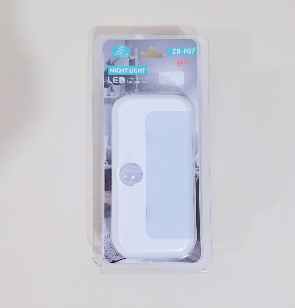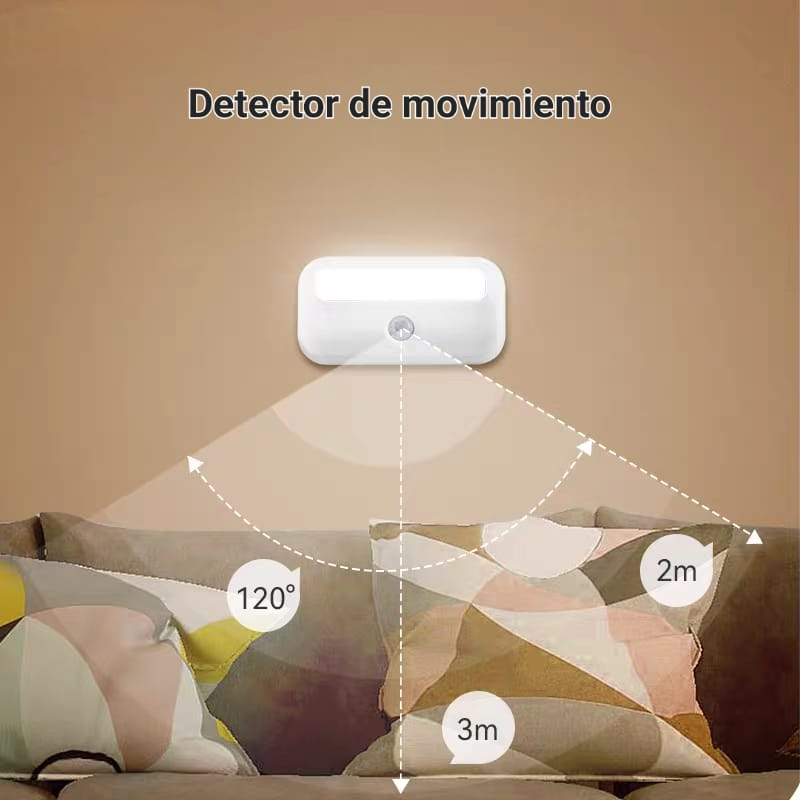 (Luz Led que se enciende automáticamente cuando detecta movimiento en su rango de alcance. Sirve principalmente para proporcionar iluminación temporal en la oscuridad, especialmente útil en áreas como pasillos, escaleras, baños o dormitorios, sin la necesidad de encender interruptores manuales. También contribuye al ahorro de energía al encenderse solo cuando es necesario. Recargable con cable USB).