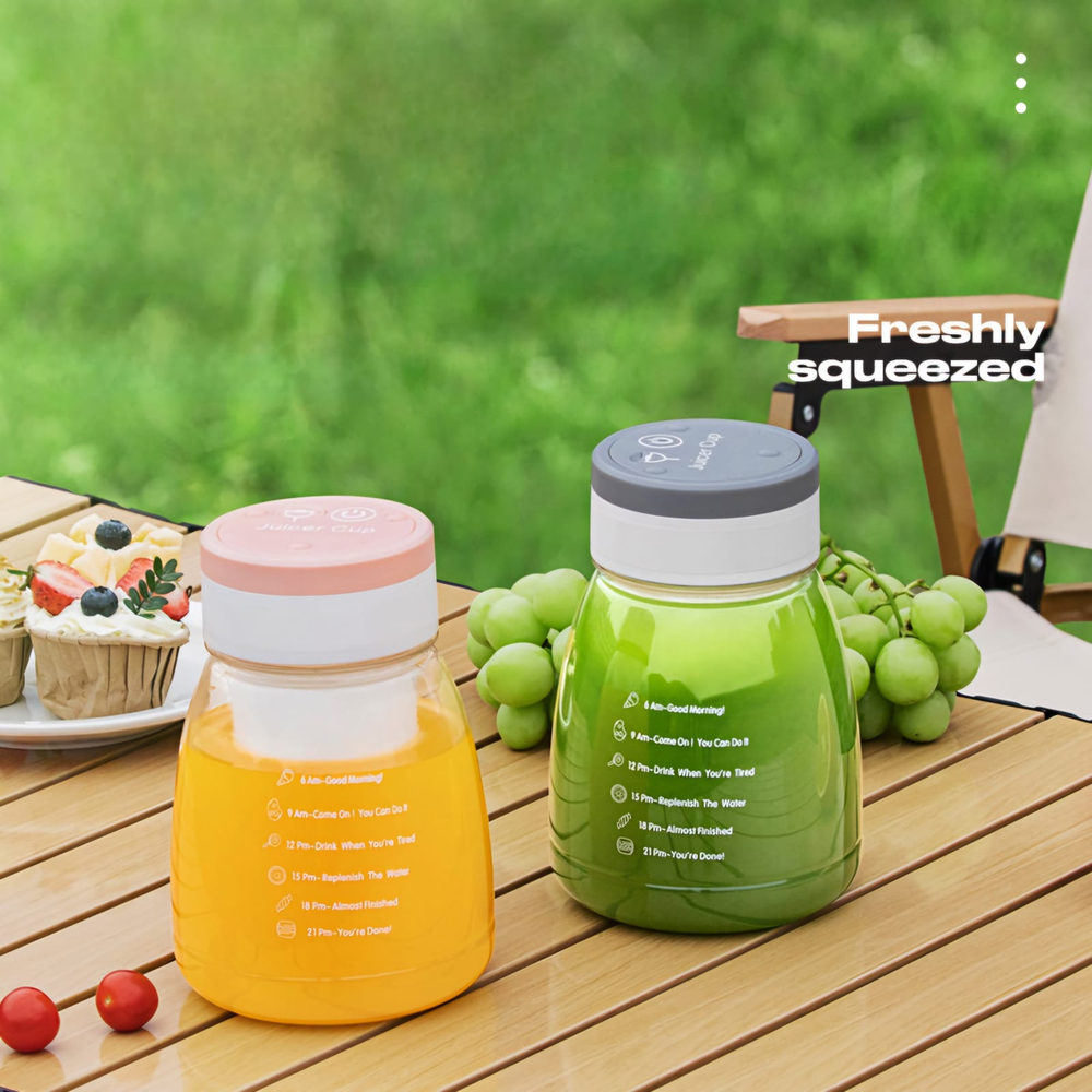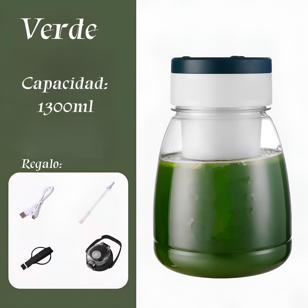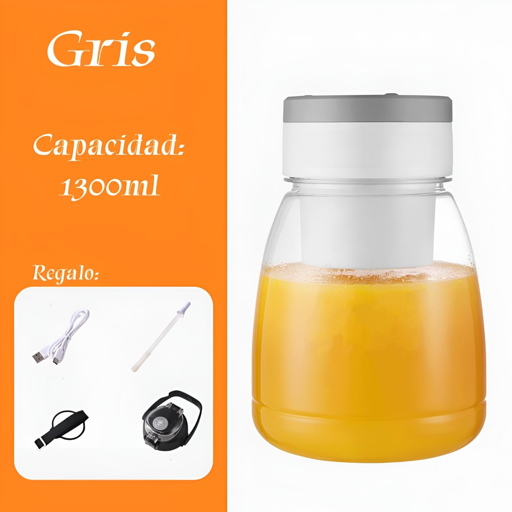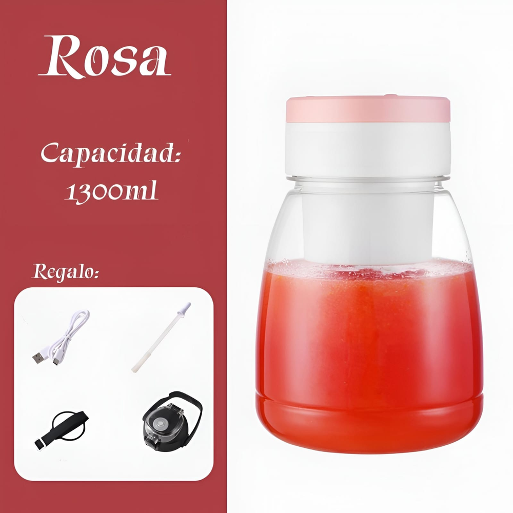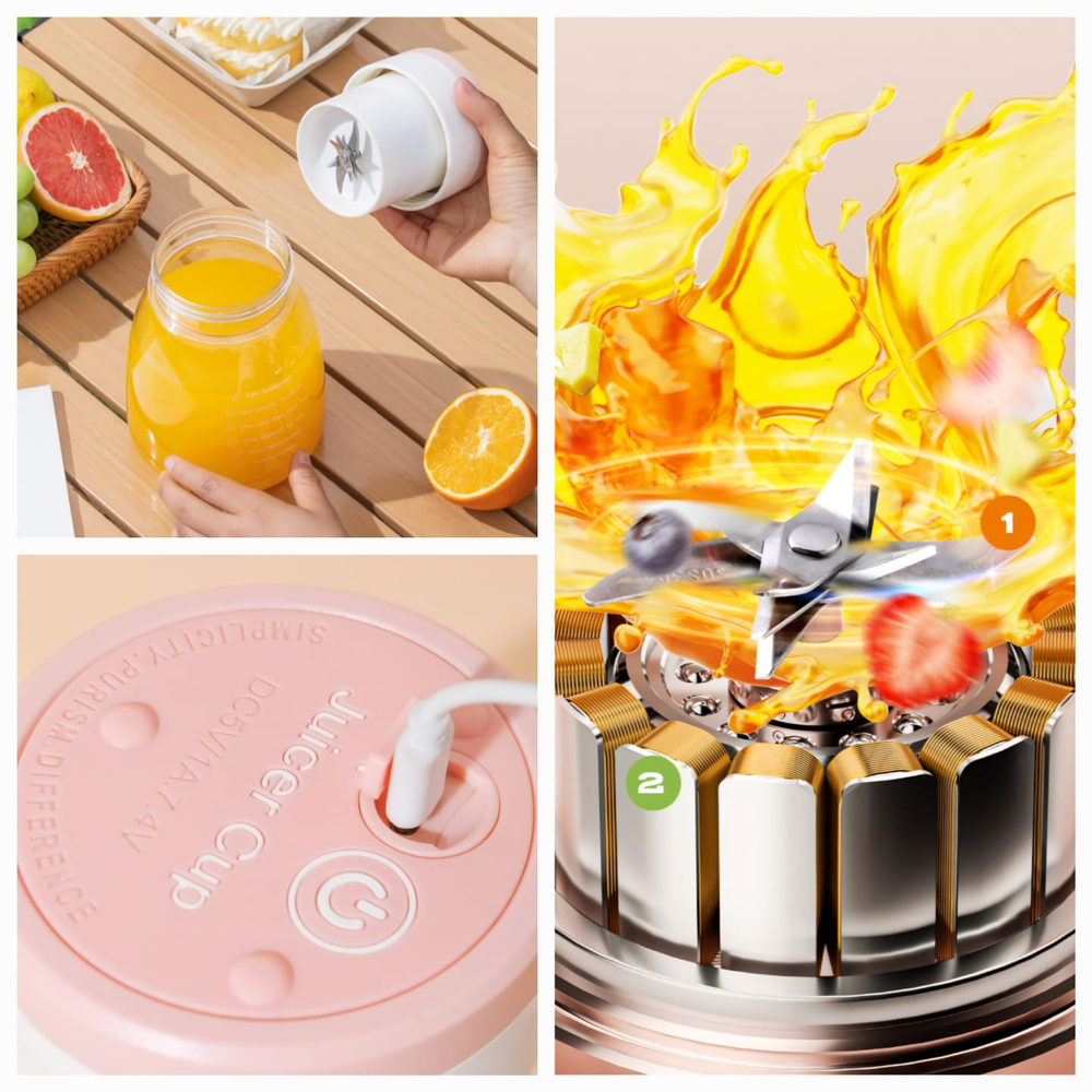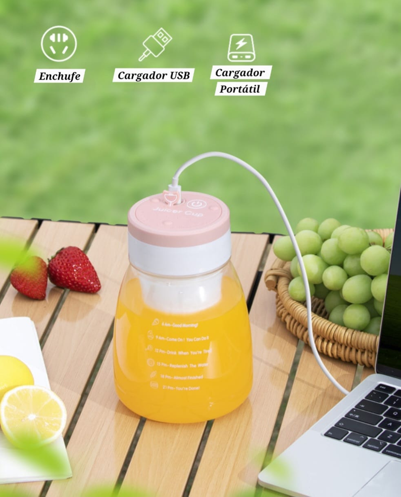 (Licuadora o juguera personal que permite preparar batidos y jugos en cualquier lugar. Su diseño compacto y recargable por USB la hace ideal para usar en la oficina, el gimnasio, al aire libre o de viaje. Se carga fácilmente a través de un cable USB. Sirve para preparar batidos, licuados, mezclas de jugos, batidos de proteínas e incluso alimentos para bebés).
