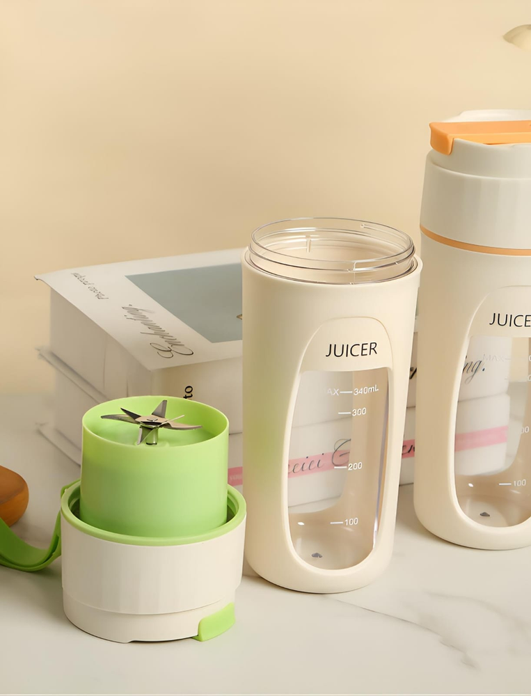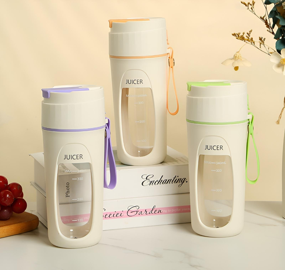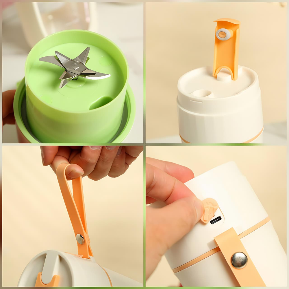 (Licuadoras portátiles recargables por USB ideales para llevar a cualquier lugar, ya que se cargan a través de USB (incluye cable). Permiten preparar batidos, jugos, y mezclar alimentos, incluyendo papillas para bebés. La capacidad es de aproximadamente 340-380ml. Cuenta con medidor y una manija de silicona).