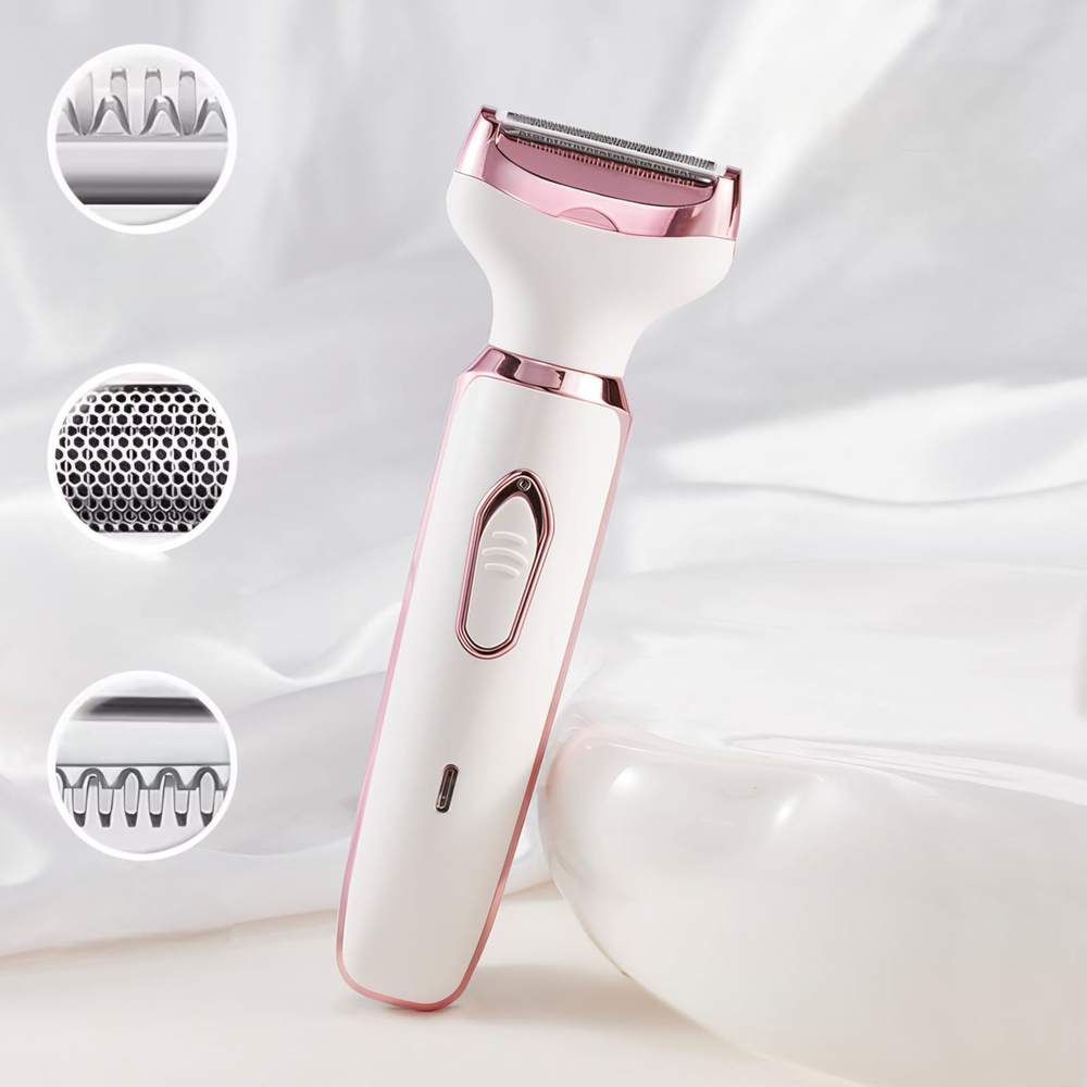 (Elimina el vello de diversas partes del cuerpo como la cara, brazos, piernas, área del bikini, nariz y cejas. Proporciona un afeitado o depilación sin tirones, quemaduras, arañazos o irritaciones, dejando la piel más suave).