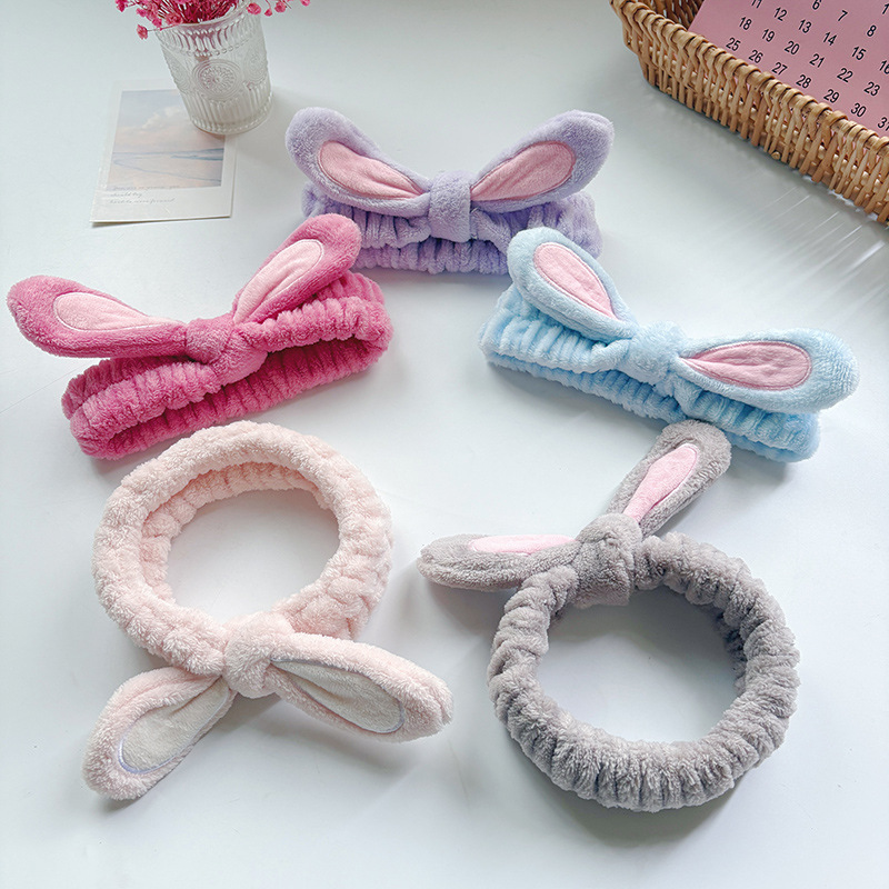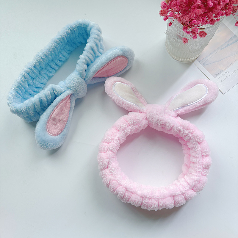 (Vincha de Skincare con temática de orejas de conejo en colores surtidos. Ideal para tu rutina de día a día).