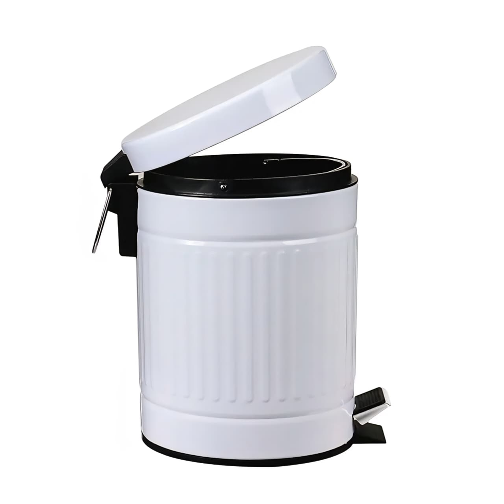 (Cesto de basura de acero inoxidable, cuenta con un pedal de apertura de tapa. Es ideal para tenerlo en tu hogar ya que cuenta con una buena capacidad).