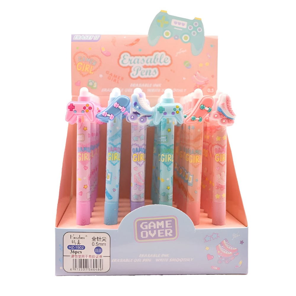 (Lapiceras con tinta de gel borrable que desaparece con la fricción. Son ideales para quienes buscan una opción de escritura que permita correcciones limpias sin usar corrector. La punta de goma en el extremo borra la tinta sensible al calor sin dañar el papel).