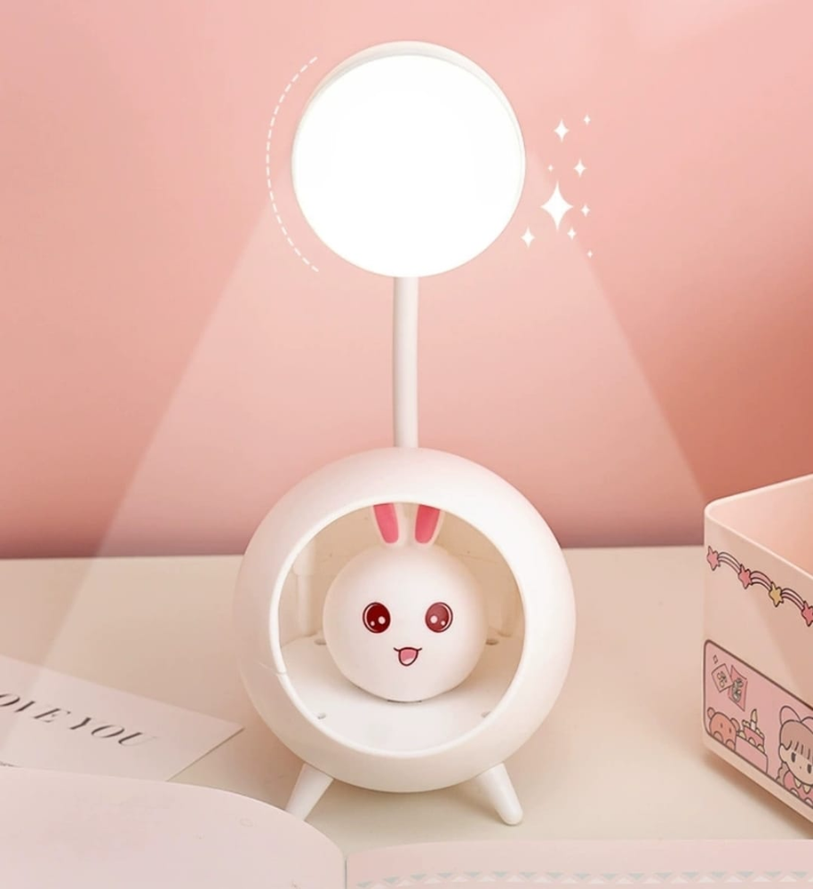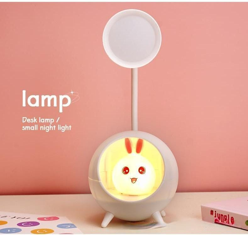 (Lampara Led Inalámbrico con diseño de conejo, recargable con cargador USB. Un foco principal y otra nocturna en la carita del conejo. Ideal para tu mesa de estudio o para regalar).