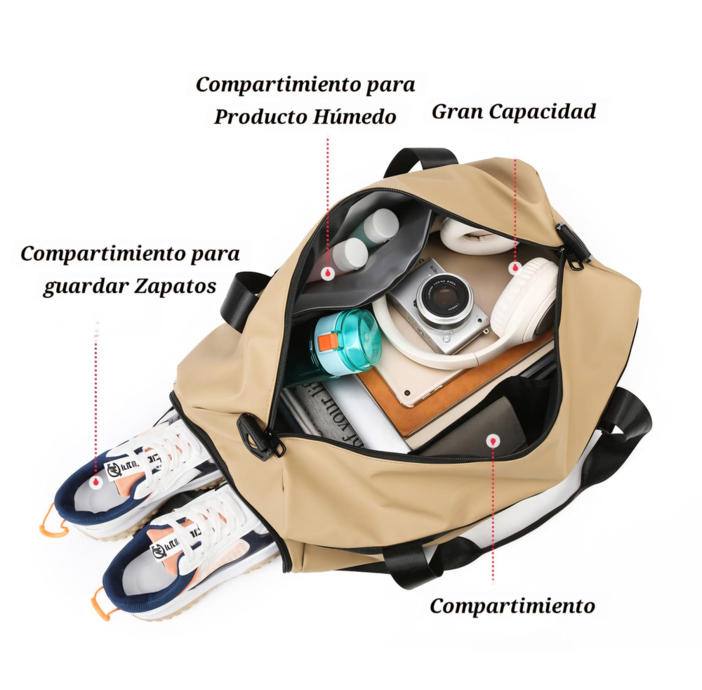 (Bolso de viaje para llevar ropa, artículos personales y otros objetos necesarios para viajes cortos, escapadas de fin de semana o como equipaje de mano en vuelos. Puede ser utilizado para diversas actividades como ir al gimnasio, practicar deportes, o como una bolsa de uso diario si se necesita llevar una cantidad considerable de objetos. Incluye compartimento para guardar zapatillas o zapatos, 2 bolsillos internos y 1 externos para ayudar a organizar y acceder fácilmente a los artículos, ademas de la correa para transportarlo). (Ut22)
