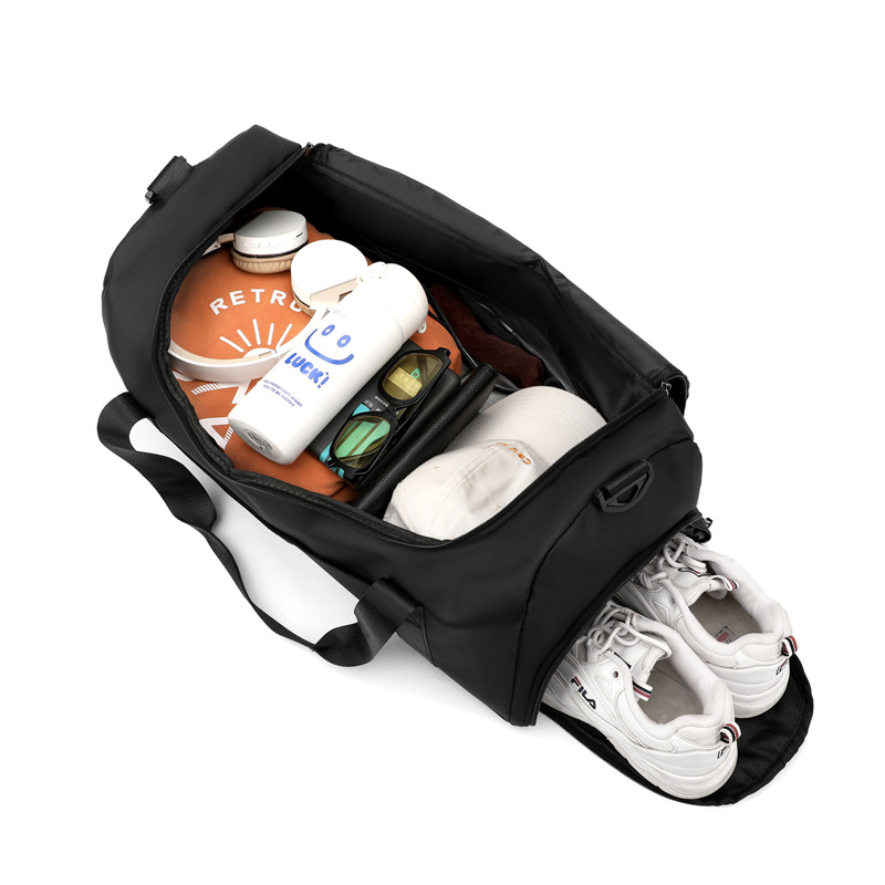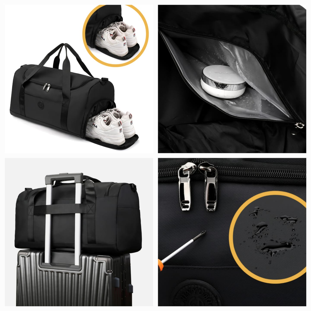 (Bolso de viaje para llevar ropa, artículos personales y otros objetos necesarios para viajes cortos, escapadas de fin de semana o como equipaje de mano en vuelos. Puede ser utilizado para diversas actividades como ir al gimnasio, practicar deportes. Incluye 3 bolsillos internos, una de ellas es impermeable apto para guardar prendas húmedas, y 2 compartimentos externos para ayudar a organizar y acceder fácilmente a los artículos. Trae consigo una correa ajustable). (Ut22)