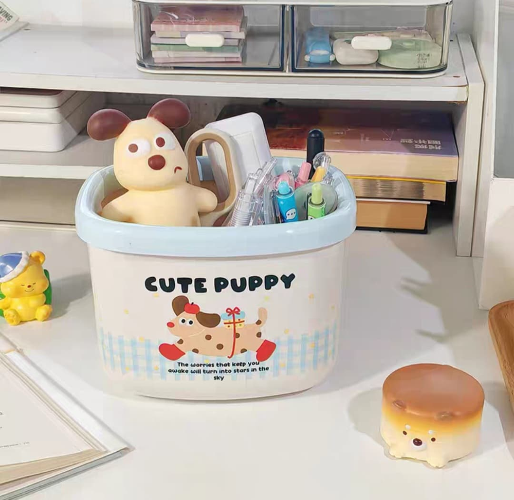 (Canasto que cumple la función de organizar y almacenar objetos pequeños, como bolígrafos, lápices, pinceles, cosméticos o cualquier otro artículo de escritorio o tocador).