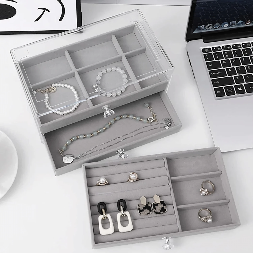 (Si no sabe cómo guardar sus joyas en su tocador, ahora puede elegir nuestro organizador de joyas para resolver sus molestias y dejar de preocuparse por no encontrar sus joyas. Es muy delicado y cuenta con cajoncitos).