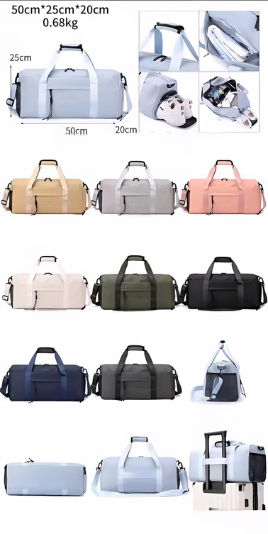 (Bolso de viaje para llevar ropa, artículos personales y otros objetos necesarios para viajes cortos, escapadas de fin de semana o como equipaje de mano en vuelos. Puede ser utilizado para diversas actividades como ir al gimnasio, practicar deportes. Incluye compartimento para zapatillas, 3 bolsillos internos y 2 externos, una de ellas es impermeable ideal para guardar prendas húmedas. Incluye la correa para transportarlo). (Ut22).