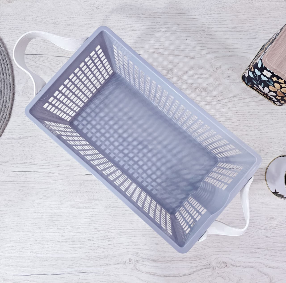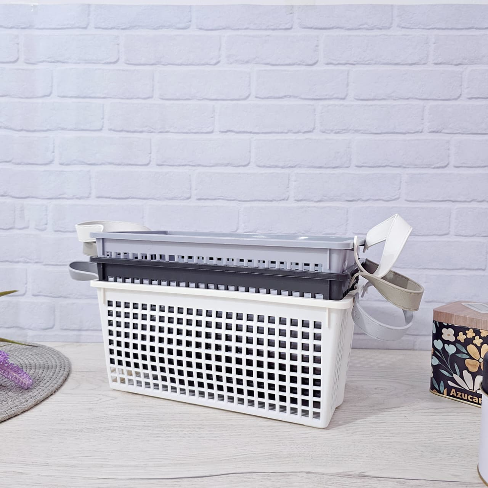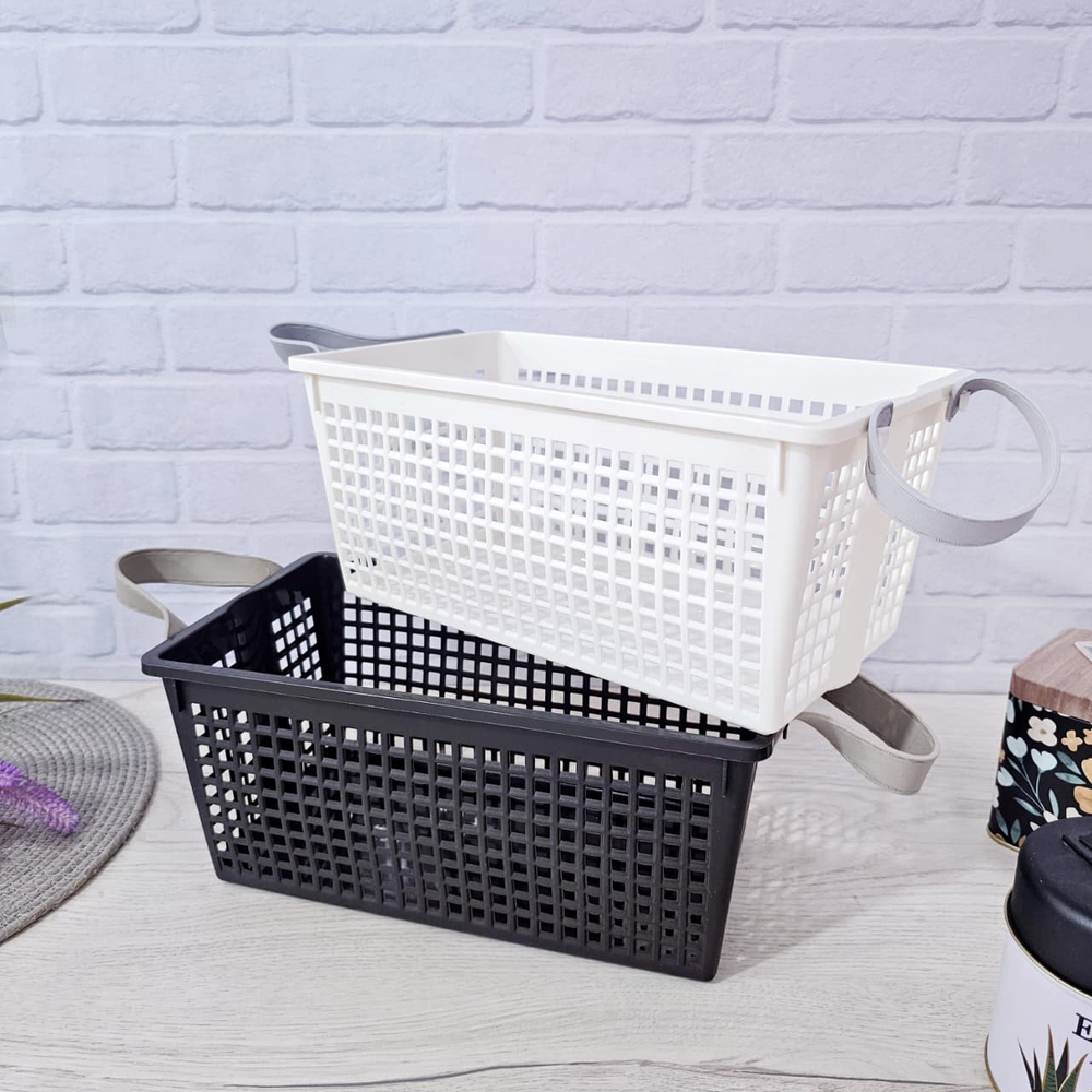 (Canasto organizador con asas, ideal para guardar ropa, juguete, etc. Disponible en color blanco, negro y gris).