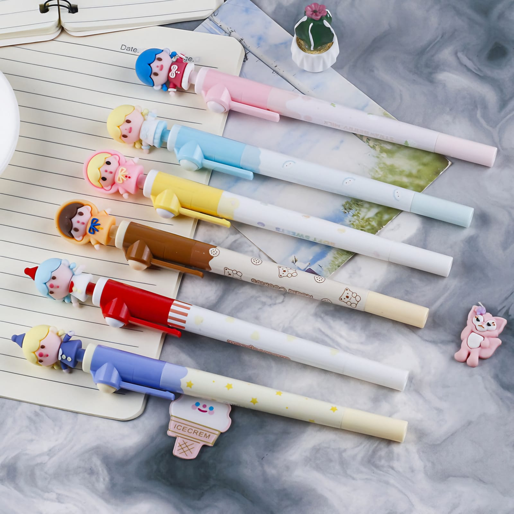 (Lapiceras con tinta negra, cuentan con con divertido diseño de muñecas, el elemento en la parte superior es un juguete antiestrés permitiendo al usuario manipularlo para aliviar la tensión o simplemente por diversión. Su diseño atractivo y divertido los hace ideales como obsequio o para coleccionistas de artículos de papelería temáticos).
