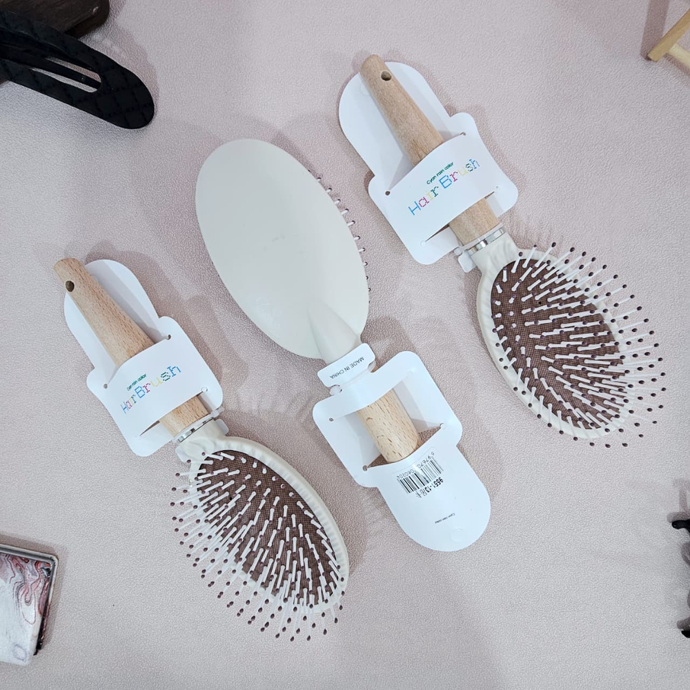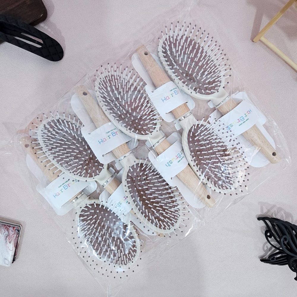 (Cepillo para el cabello con cojín, minimalista, previene la estática, cepillo de masaje para desenredar con mango de madera para peluquería en casa, ovalado).