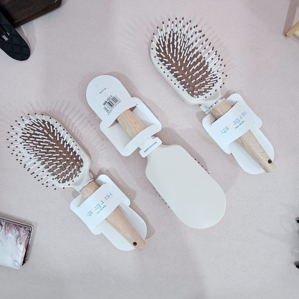 (Cepillo para el cabello con cojín, minimalista, previene la estática, cepillo de masaje para desenredar con mango de madera para peluquería en casa, ovalado).