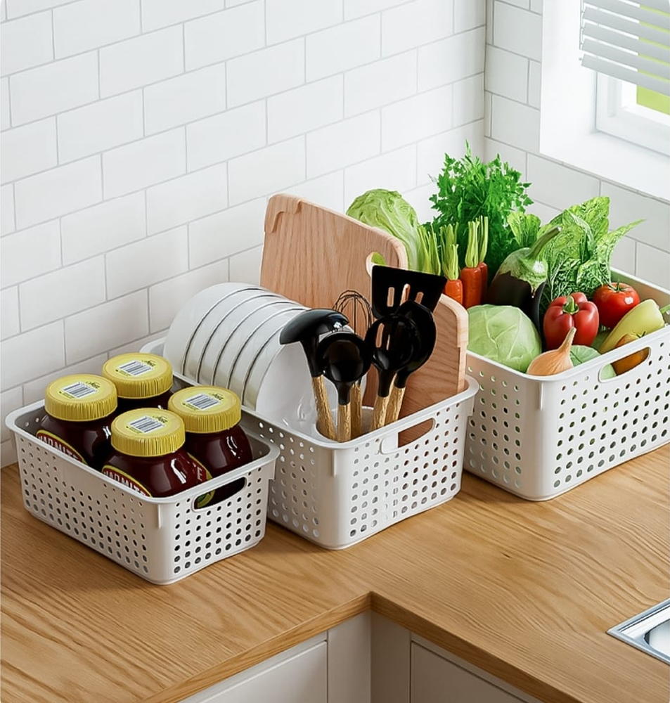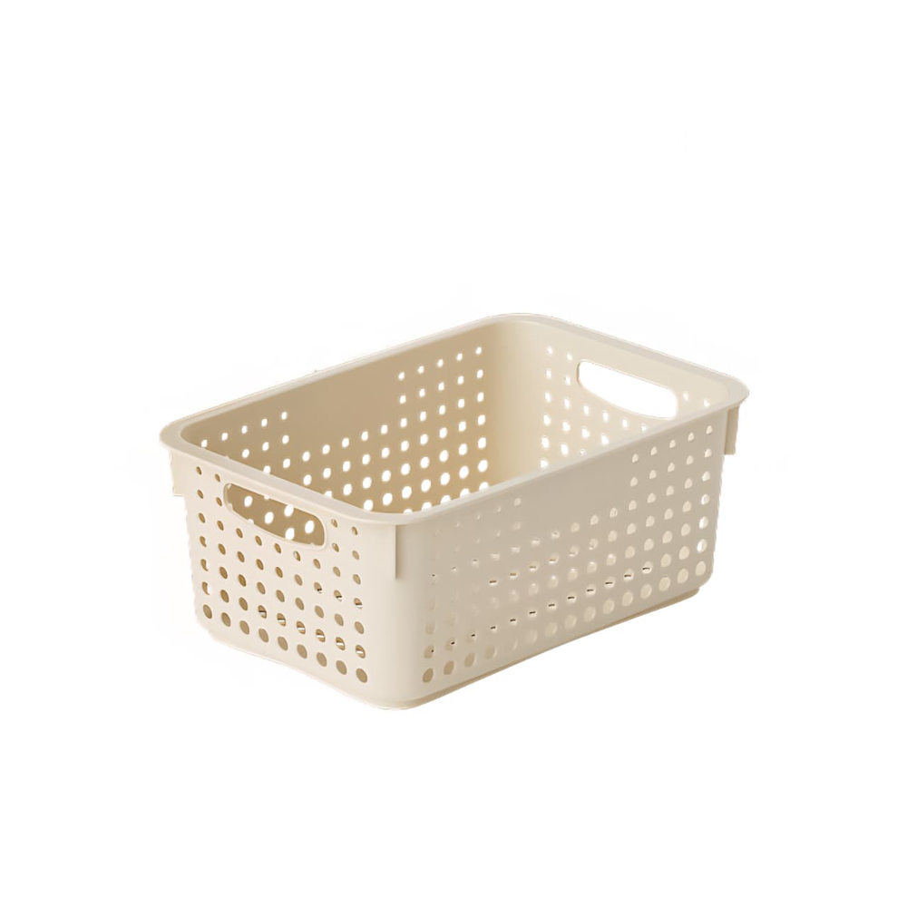 (Canasto organizador chico en color crema , ideal para guardar ropa, juguete, etc.).