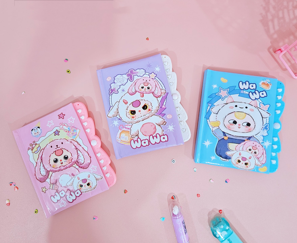 (Cuaderno infantil con clave numérico, vienen con diseño de los personajes "Baby Three, disponibles en color lila, celeste y rosa. Son ideales para regalar).