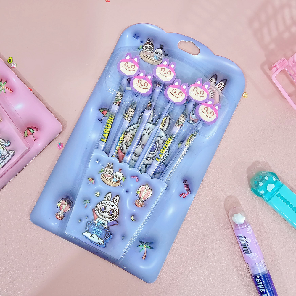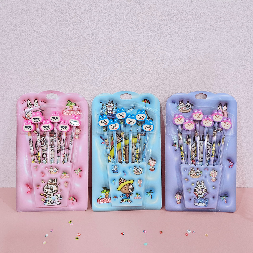 (Cuenta con 6 lápices + goma de borrar, hermosos diseños de labubu. Ideal para regalar).