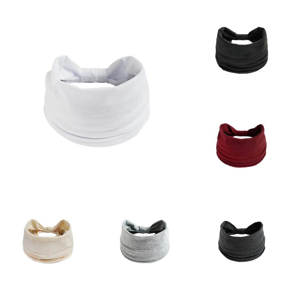 (Vincha en colores surtidos por paq. color tiene blanco, negro, gris claro, gris oscuro, bordo y piel. Ideal para tu rutina de día a día).